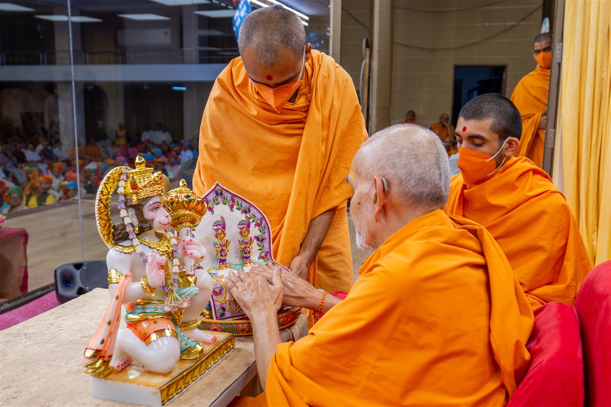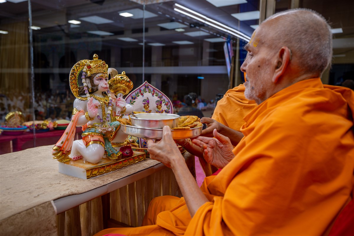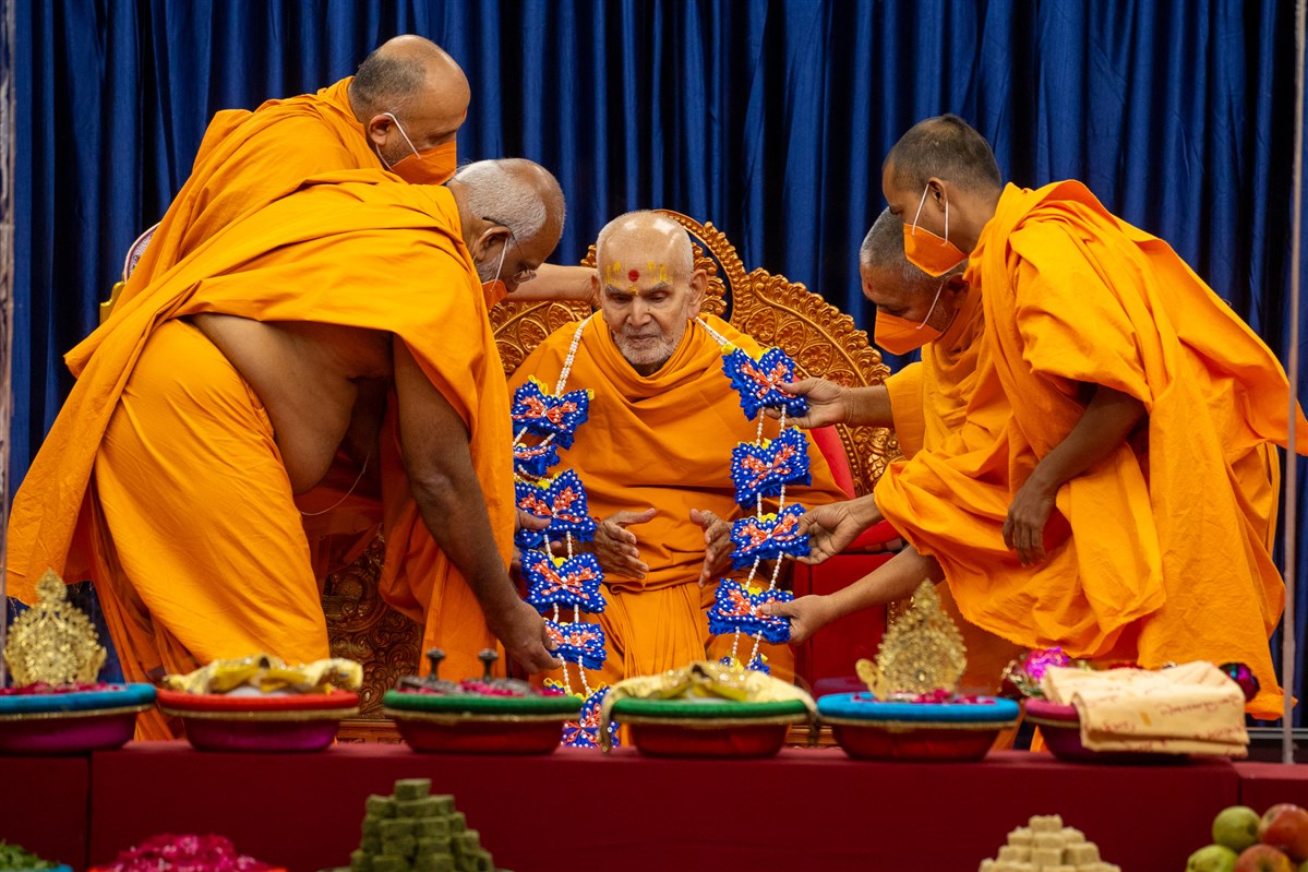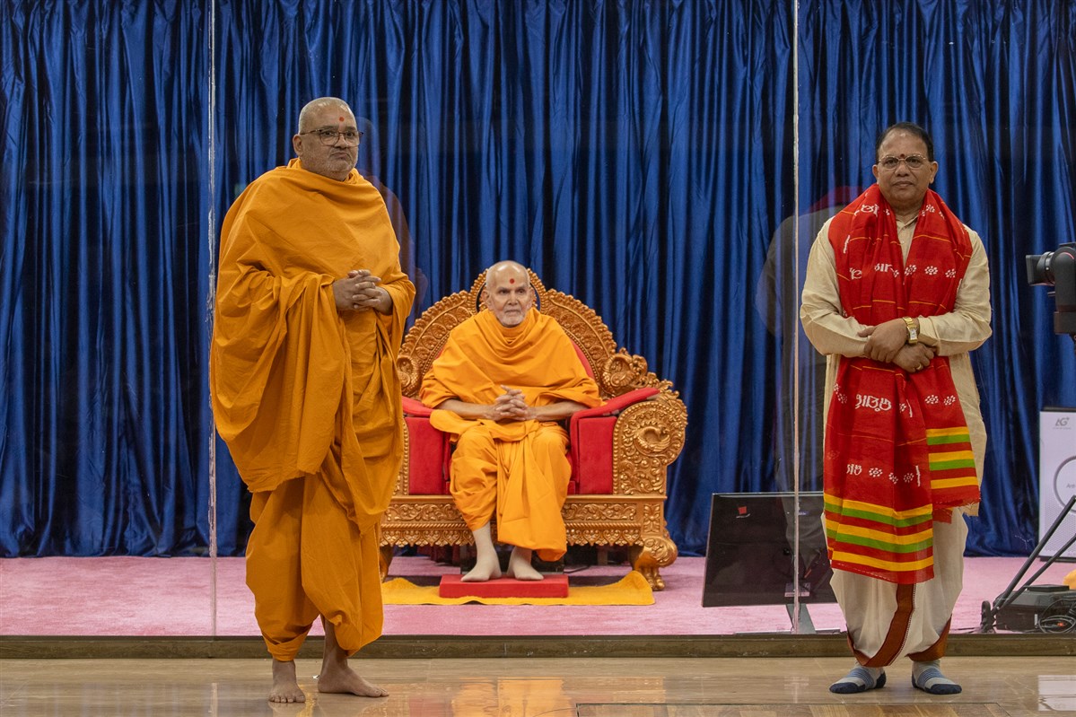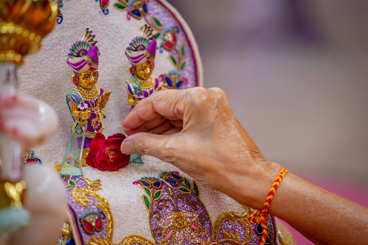 Swamis doing Swamishri's puja darshan