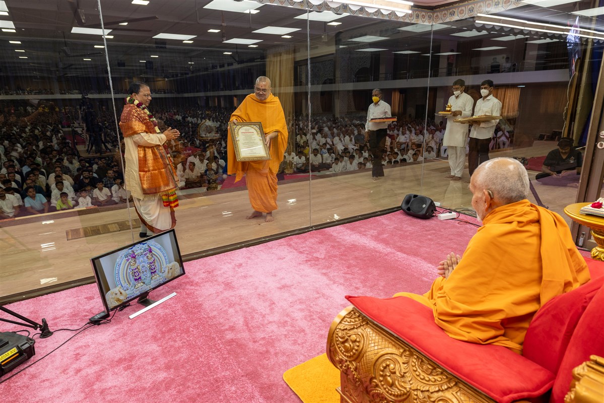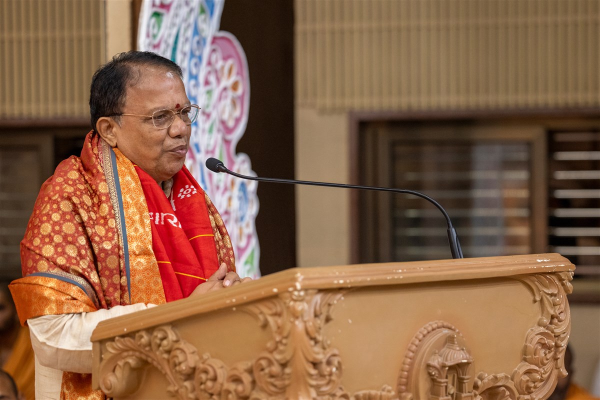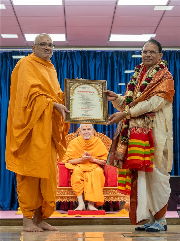 Professor Harekrishna Satpathy honored in the presence of Param Pujya Mahant Swami Maharaj