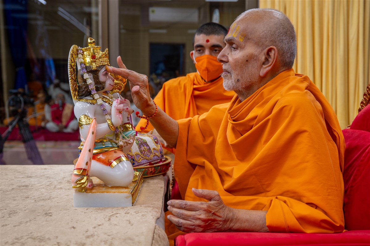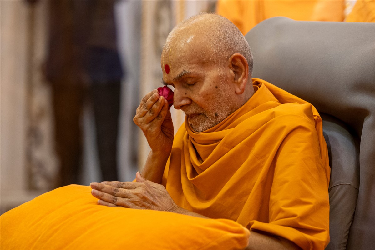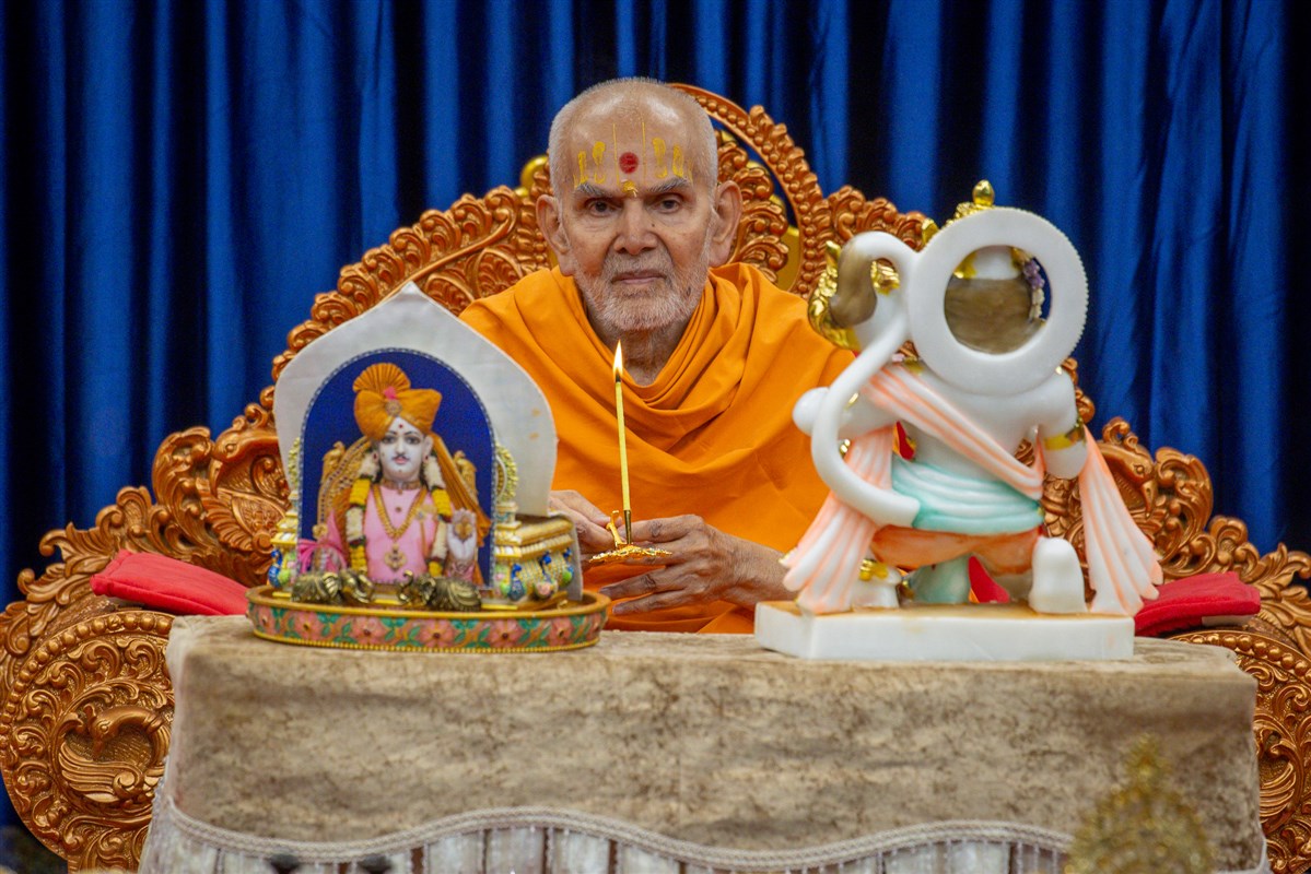 Swamishri performs the morning arti