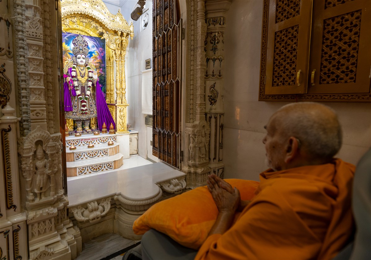 Swamishri engrossed in darshan of Shri Ghanshyam Maharaj