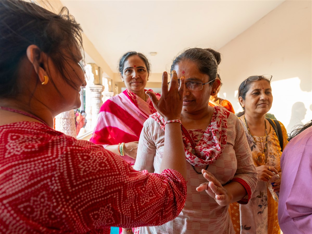 Swamis apply chandlo to devotees