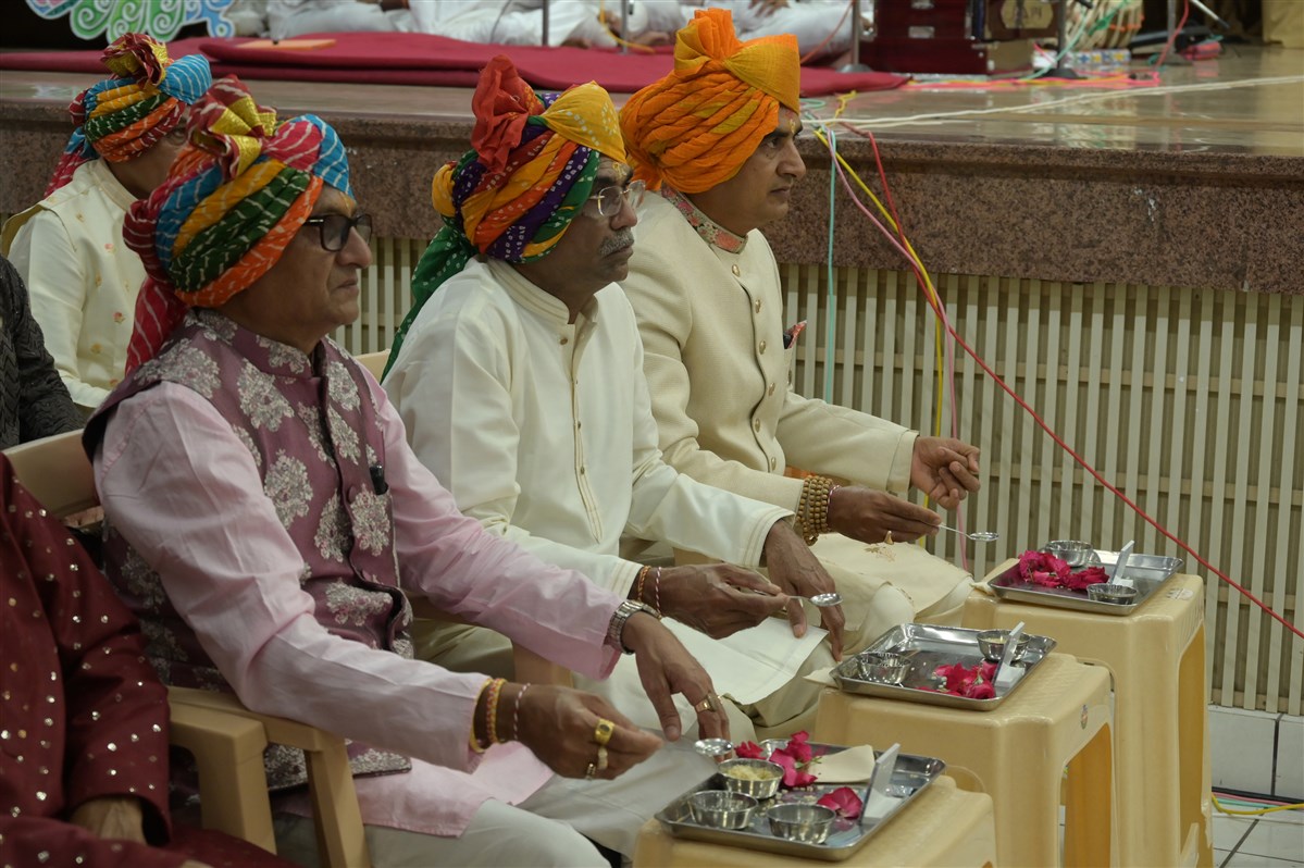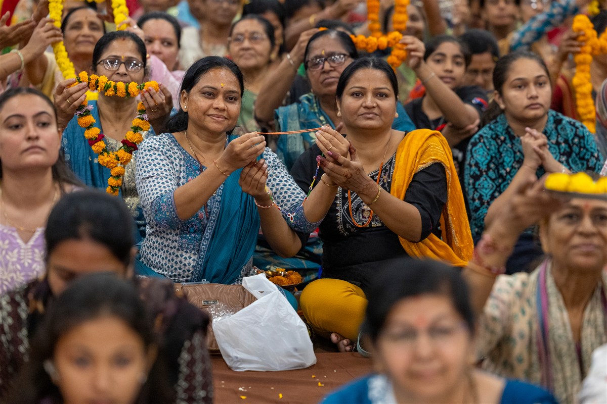 Devotees participate in parayan pujan rituals