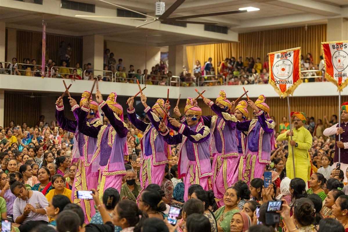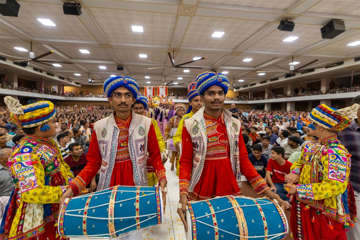 Youths rejoice before Shri Harikrishna Maharaj and Shri Gunatitanand Swami Maharaj
