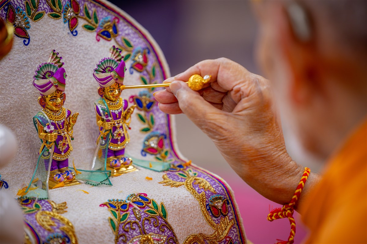 Swamishri applies a chandlo