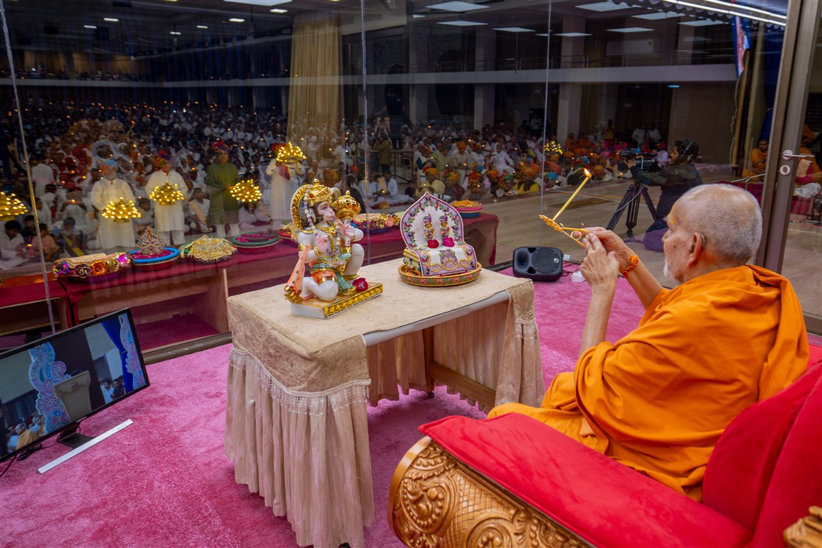 Swamishri performs the arti