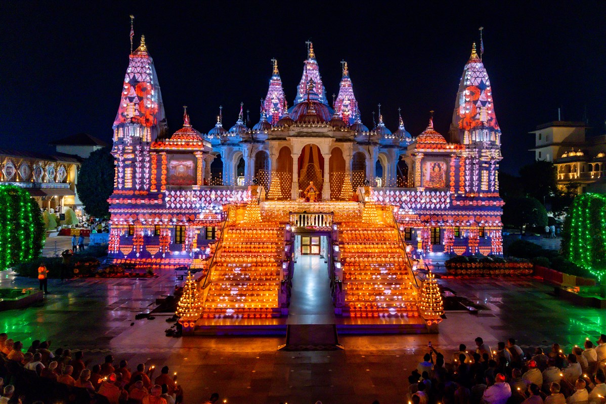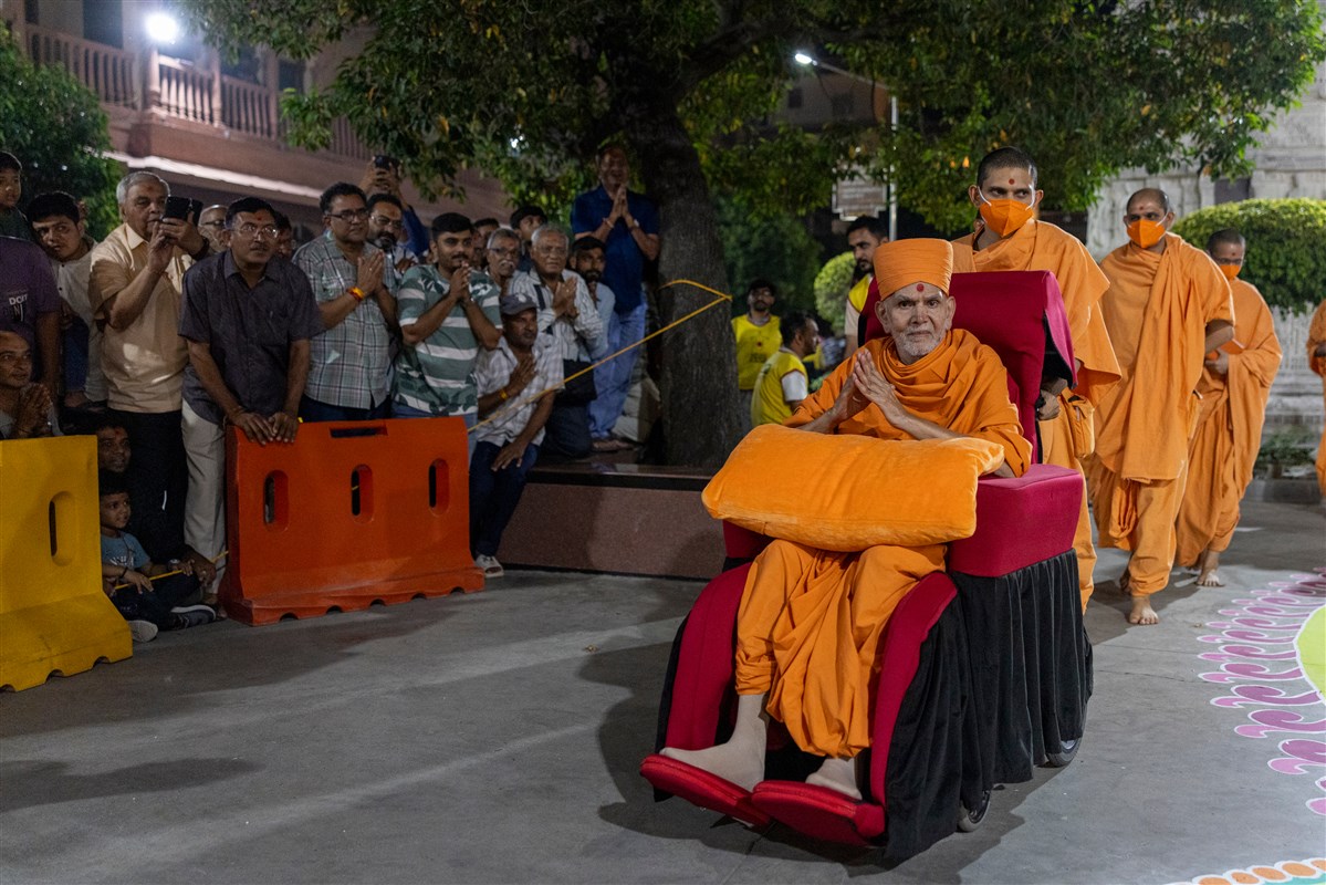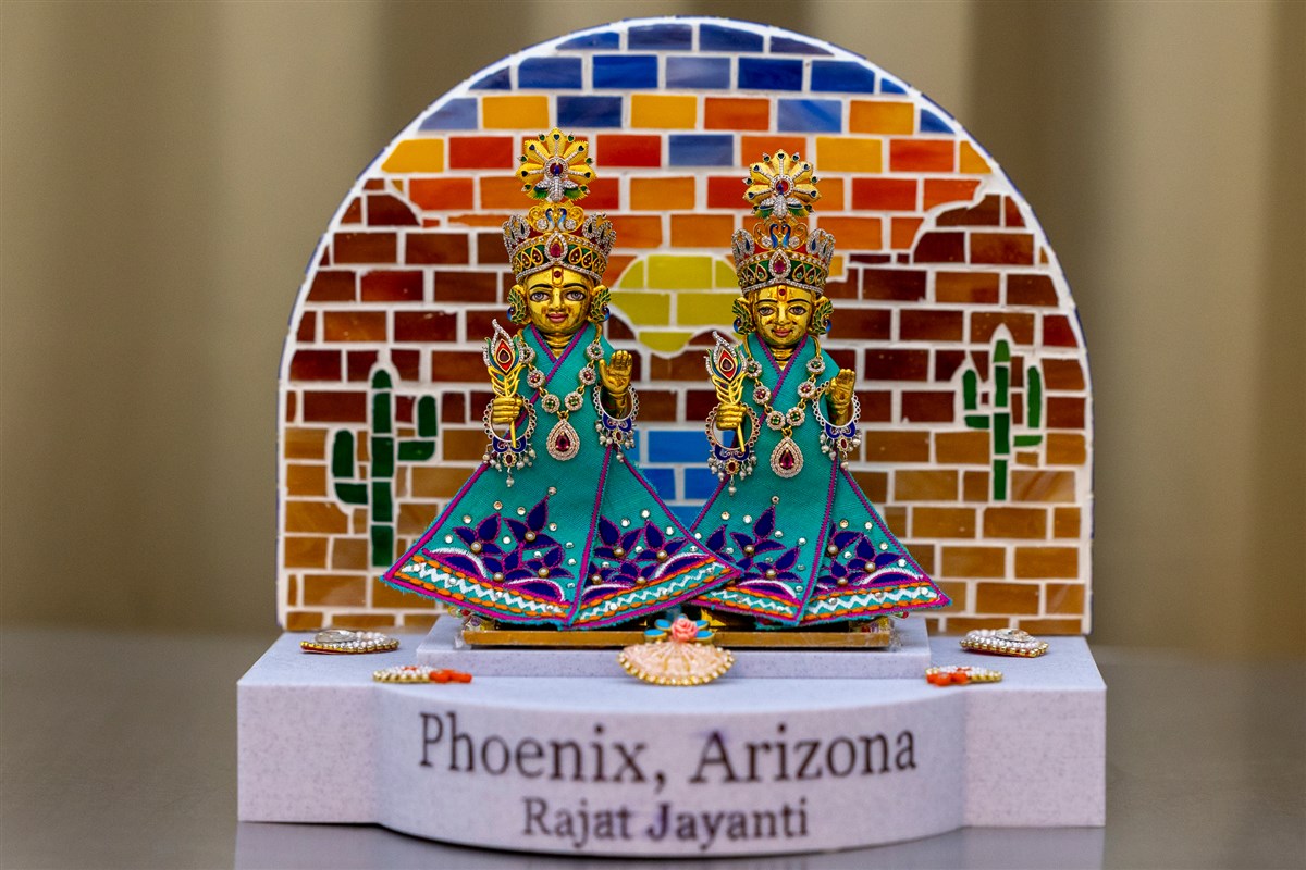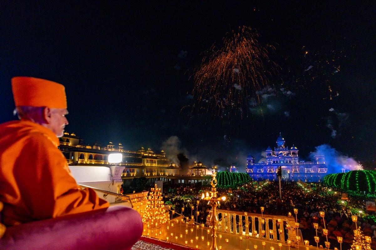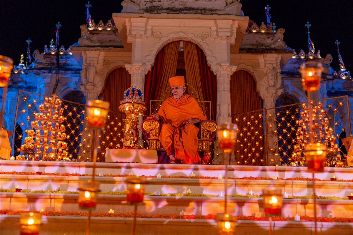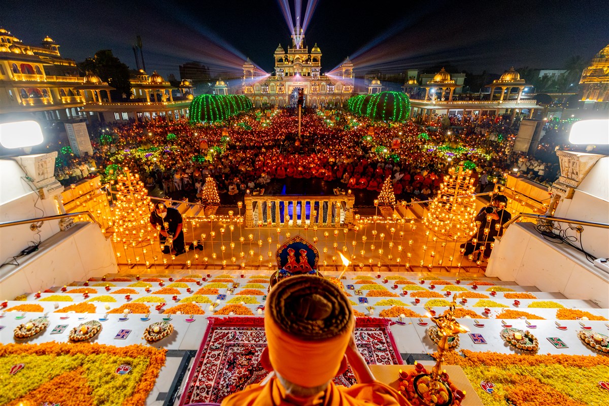 Swamishri offers thal to Shri Akshar-Purushottam Maharaj