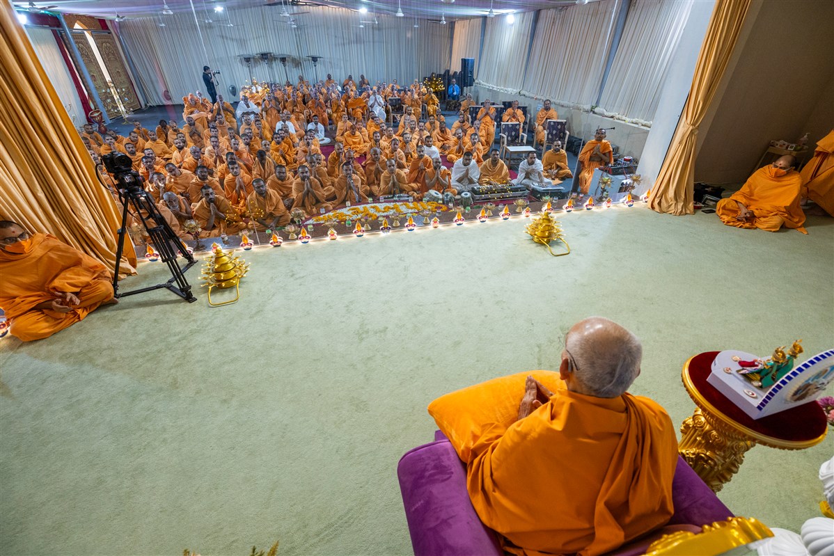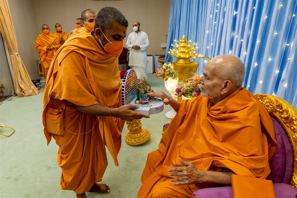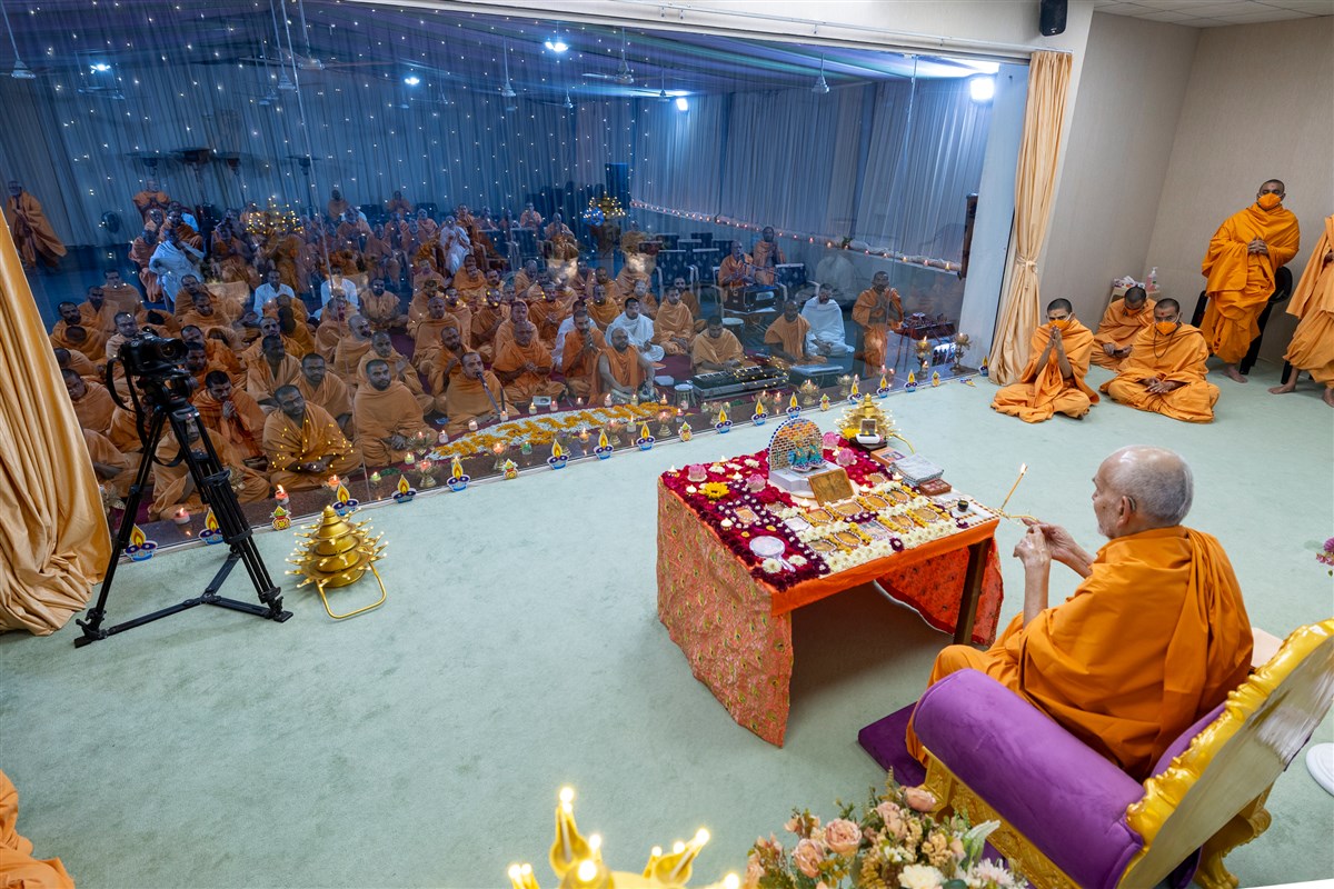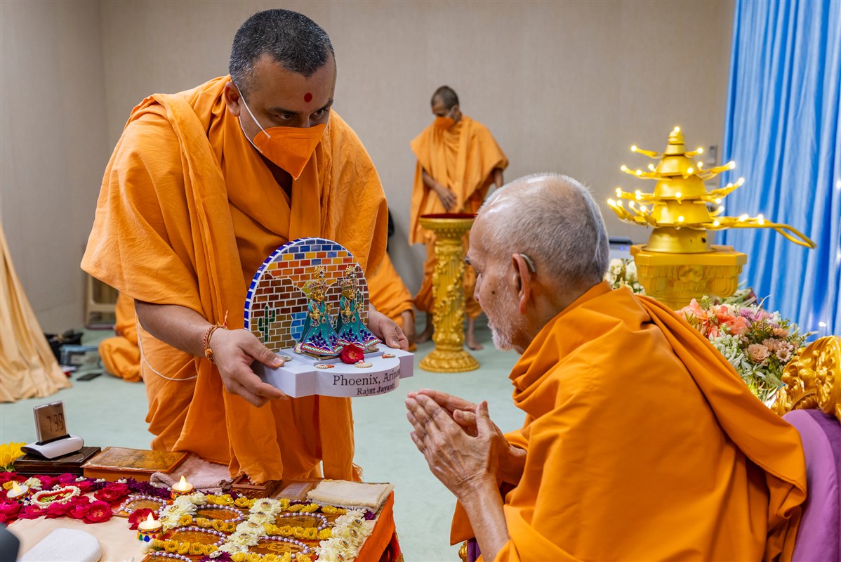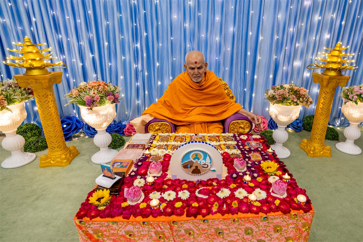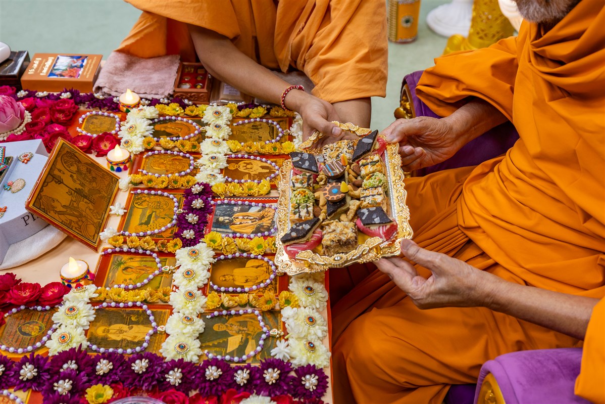 Swamishri offers thal to Brahmaswarup Pramukh Swami Maharaj