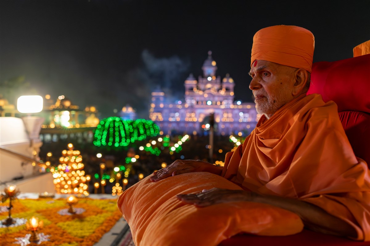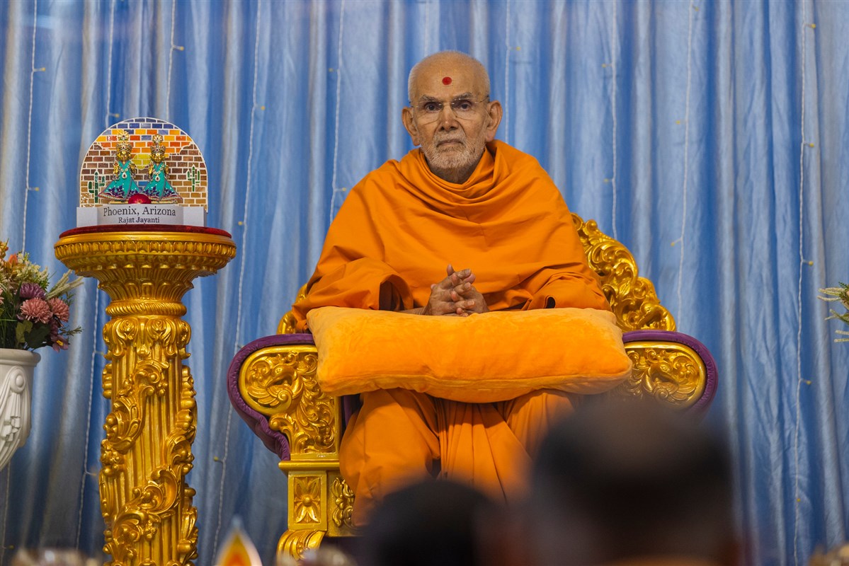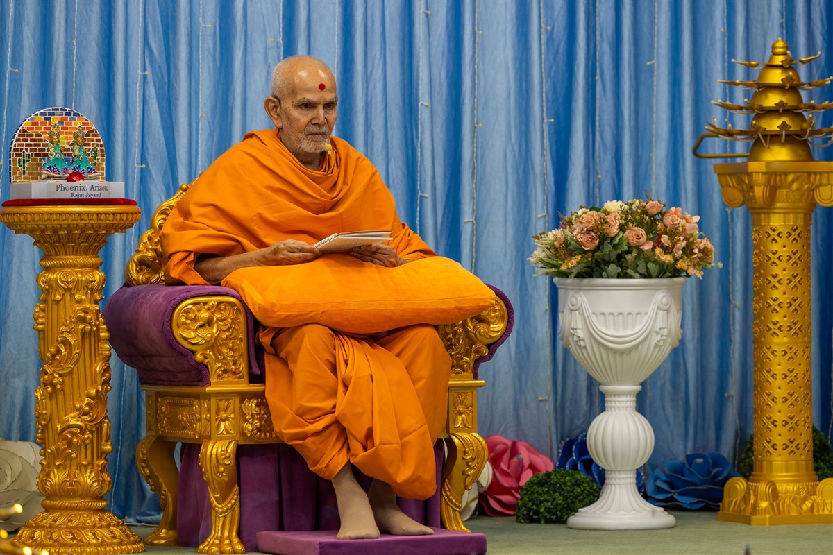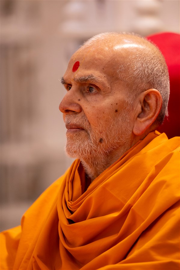 Swamishri engrossed in darshan of Shri Ghanshyam Maharaj