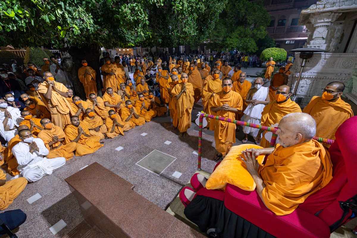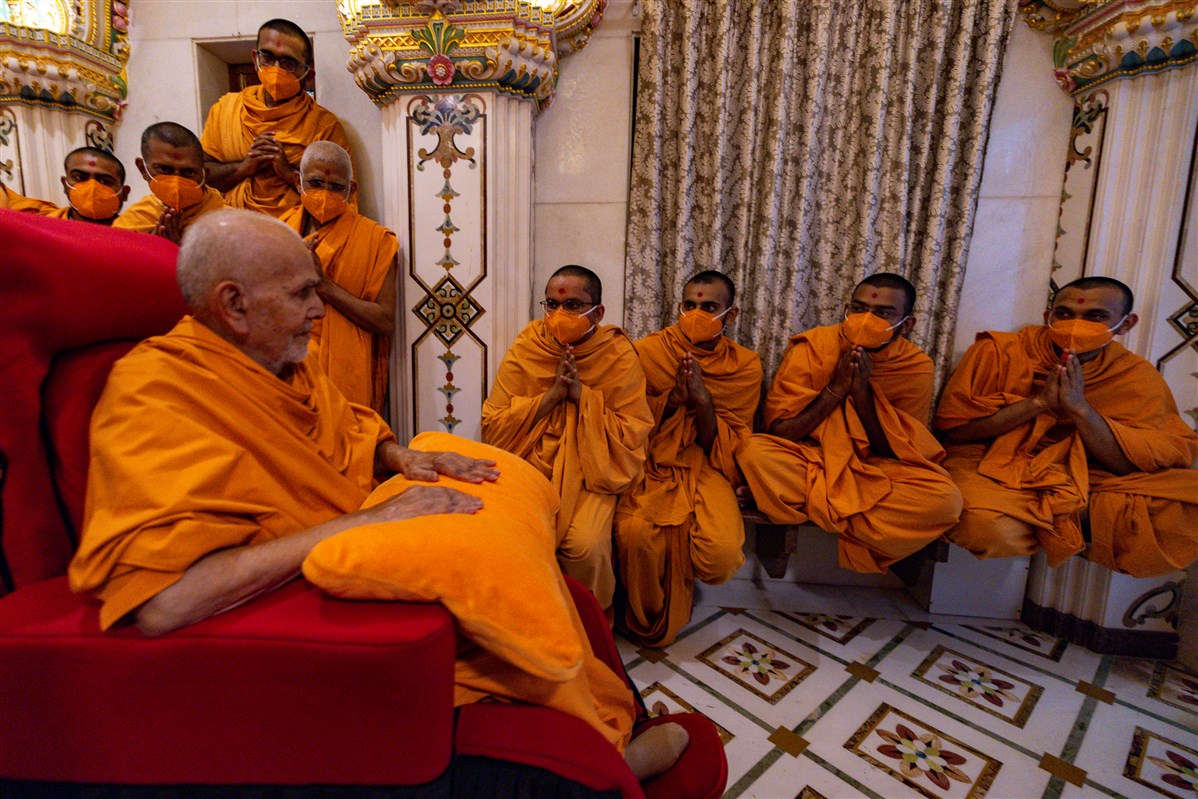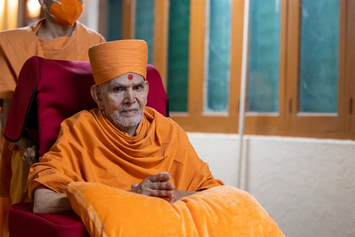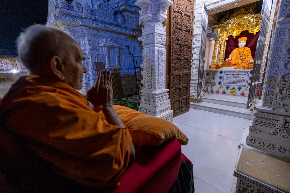 Swamishri engrossed in darshan of Brahmaswarup Pramukh Swami Maharaj