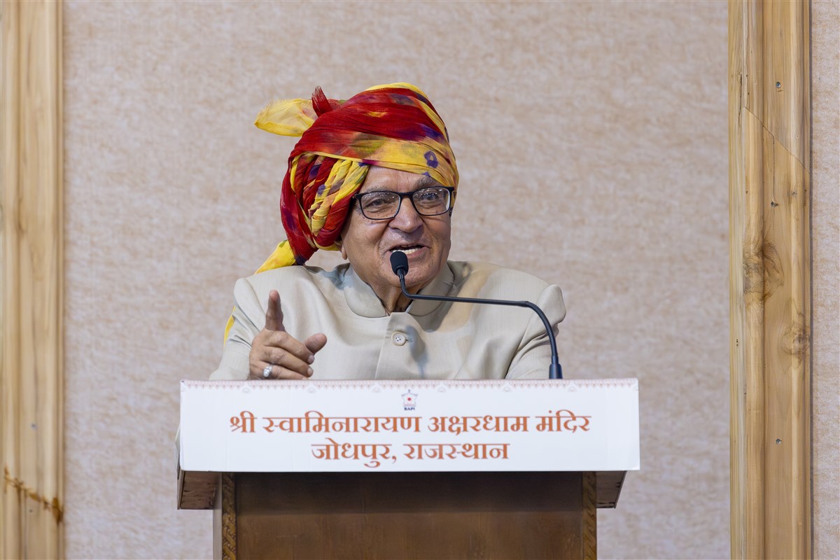 Swamishri interacts with HH Maharaja Gaj Singh
