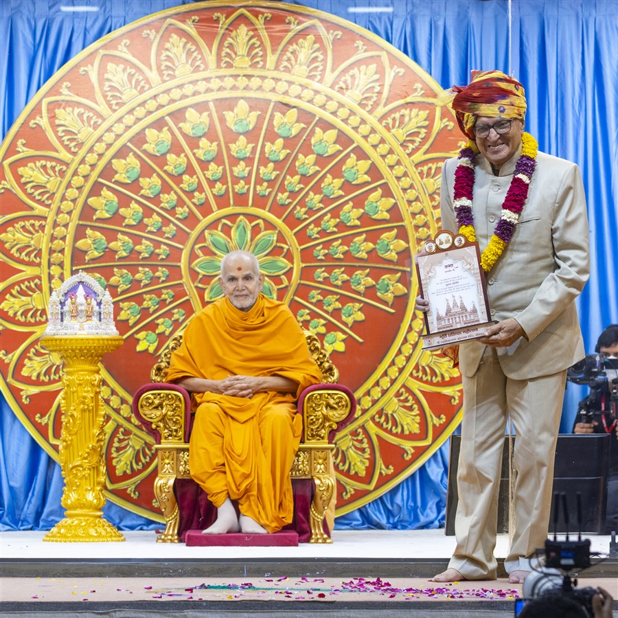 Swamishri honored with a garland