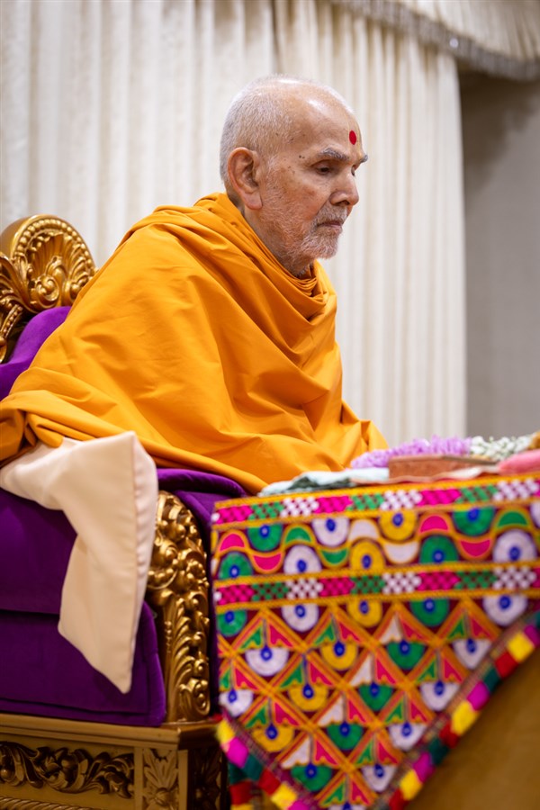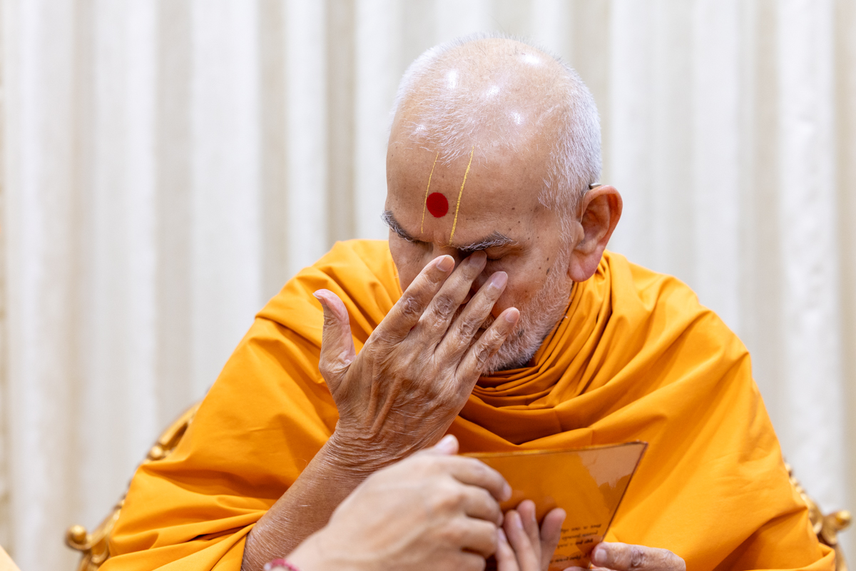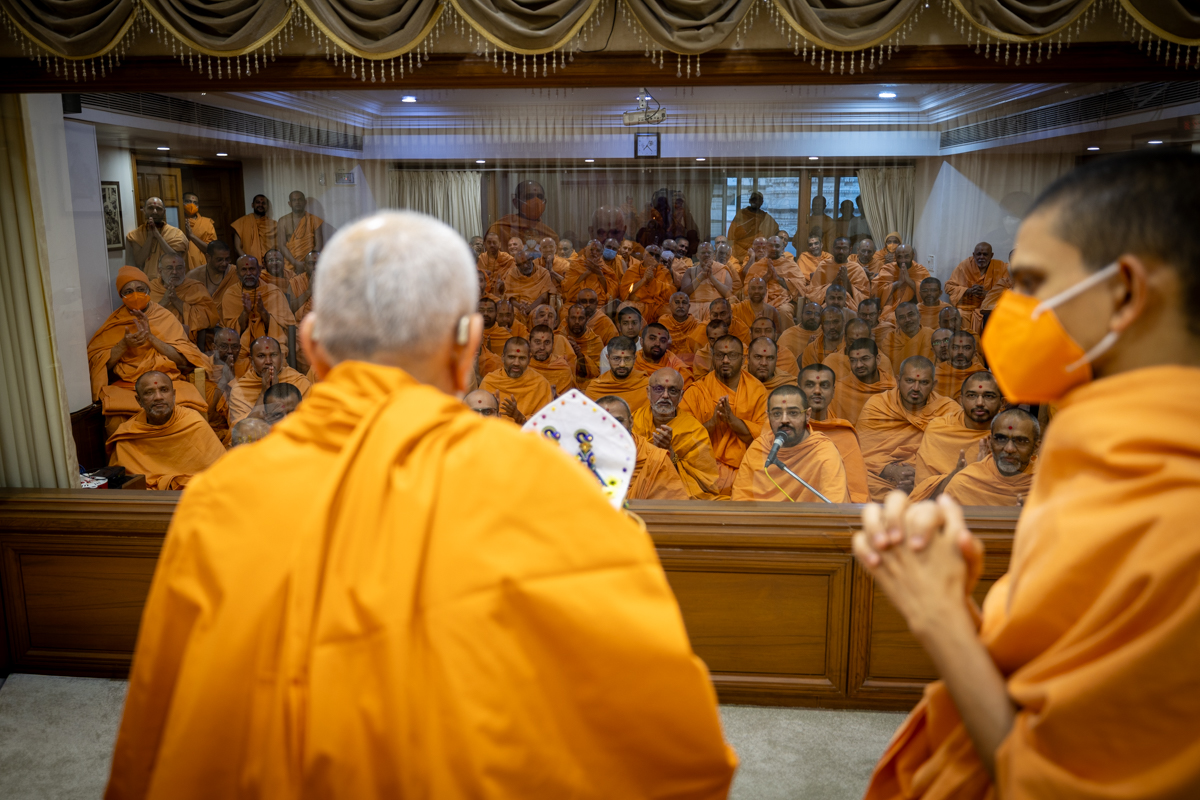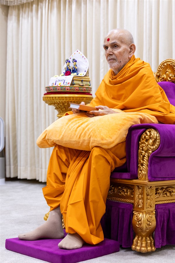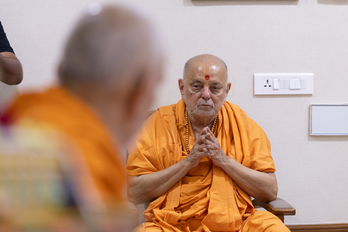 Param Pujya Mahant Swami Maharaj greets all with folded hands