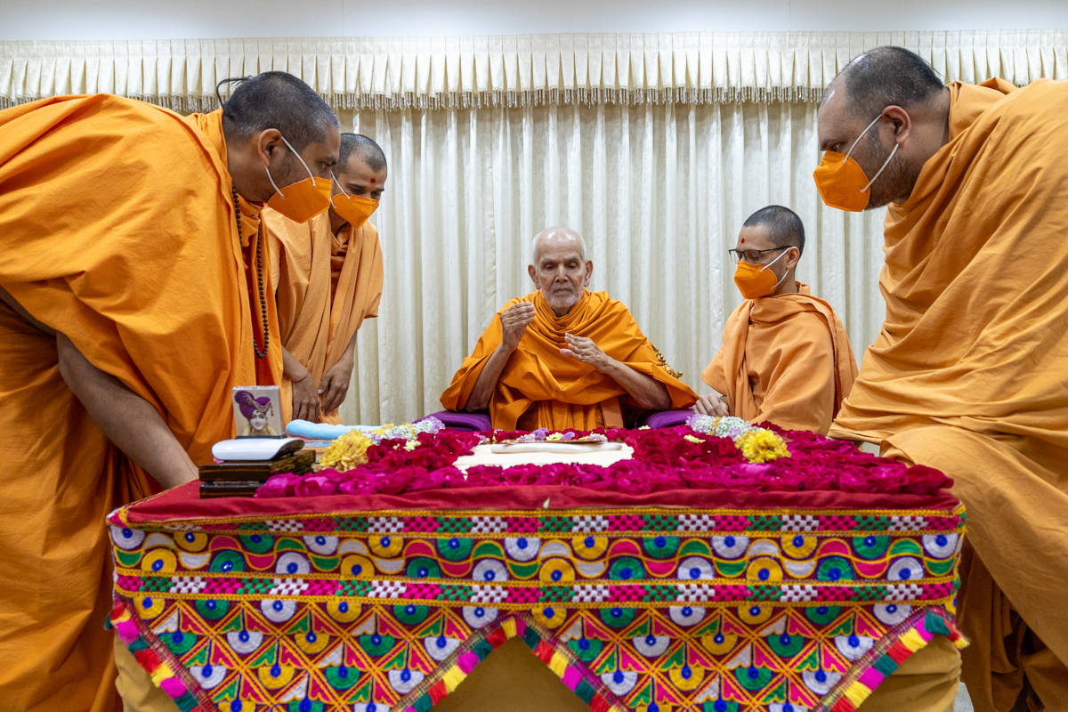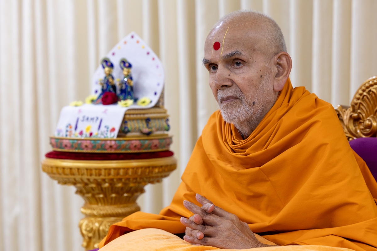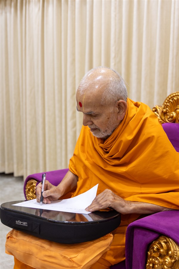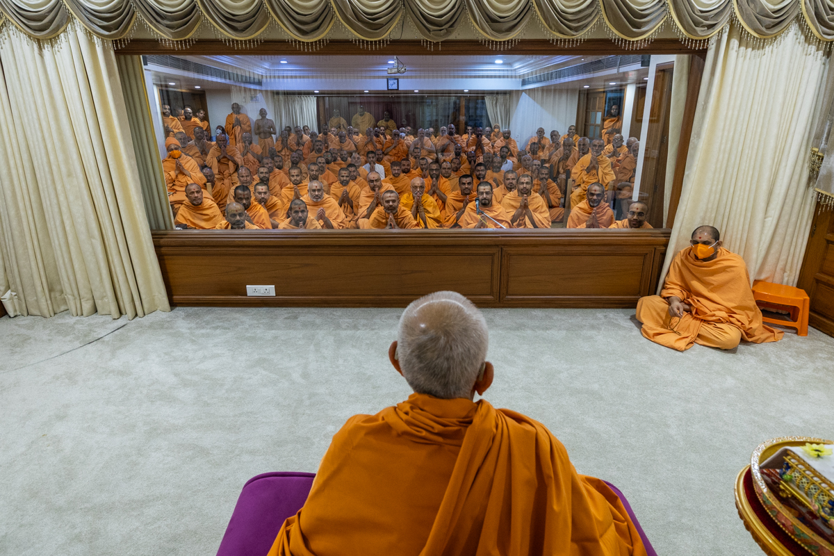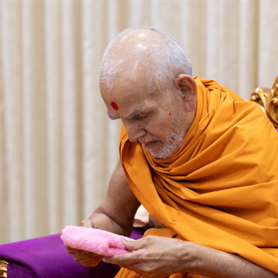 Param Pujya Mahant Swami Maharaj greets all with folded hands