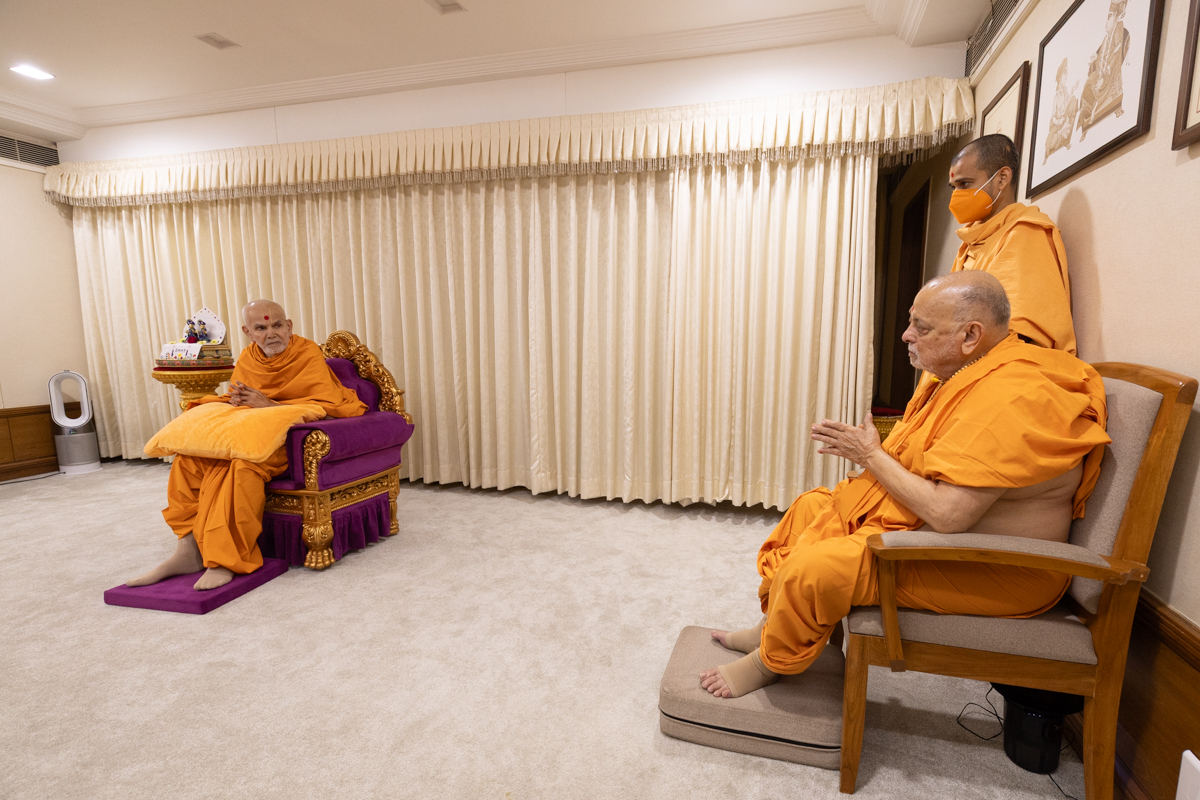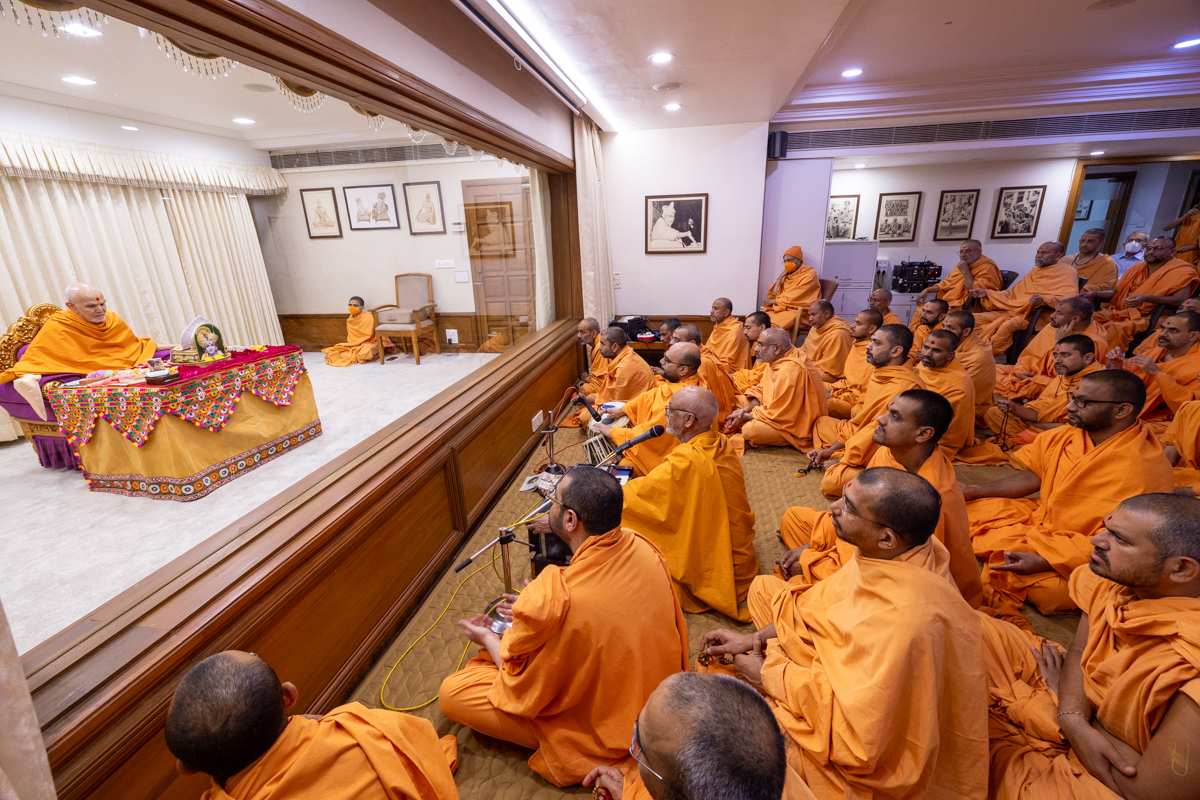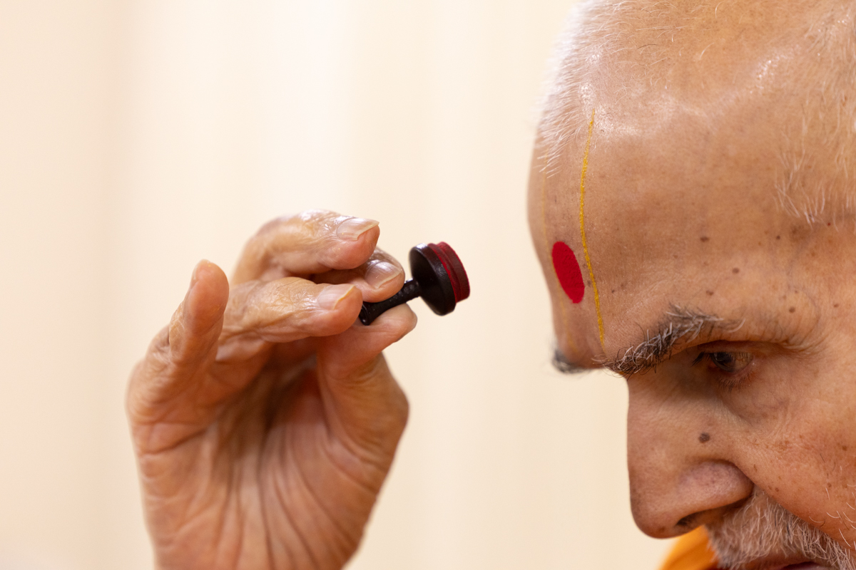 Pujya Ishwarcharan Swami doing darshan of Swamishri