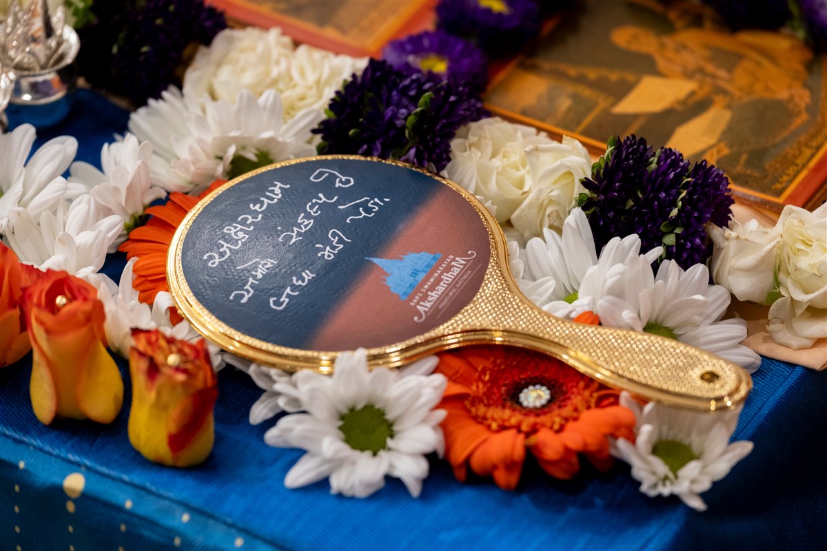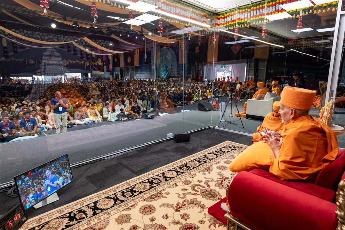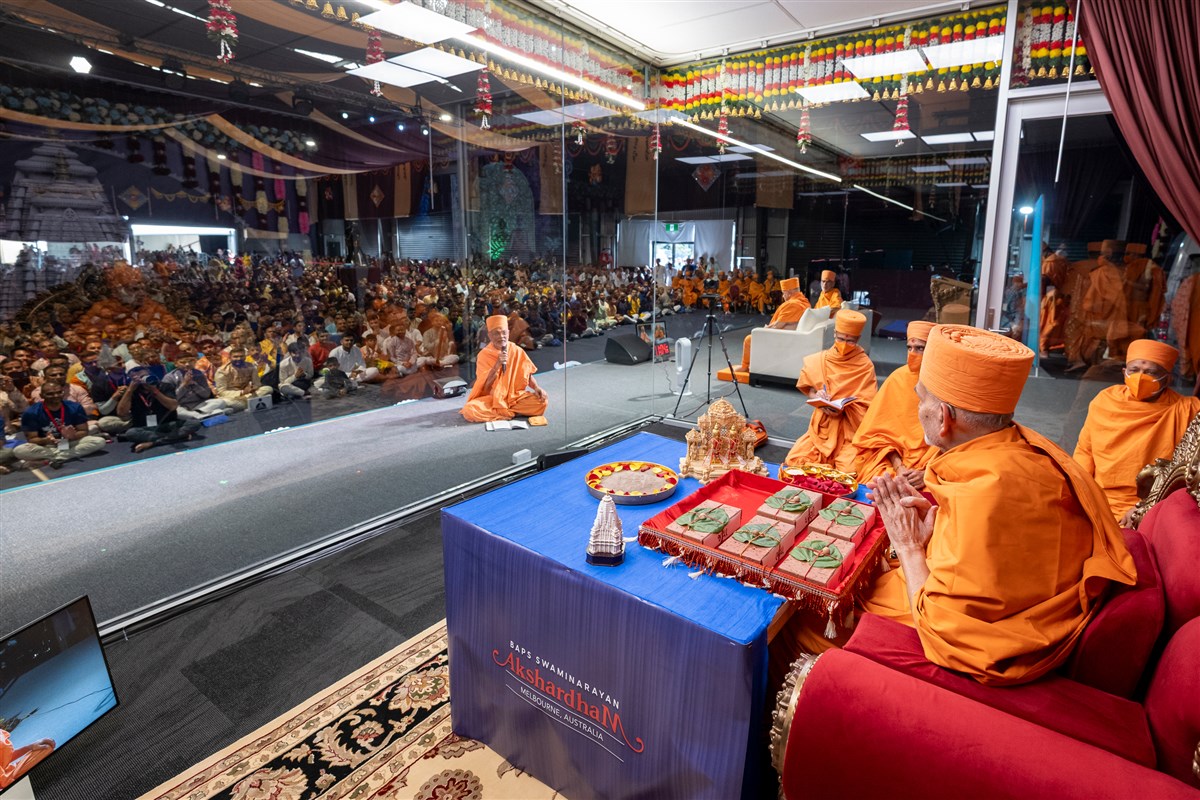 Hon. Ben Carroll, Deputy Premier of Victoria, presents a letter from Hon. Jacinta Allan, Premier of Victoria, to Swamishri