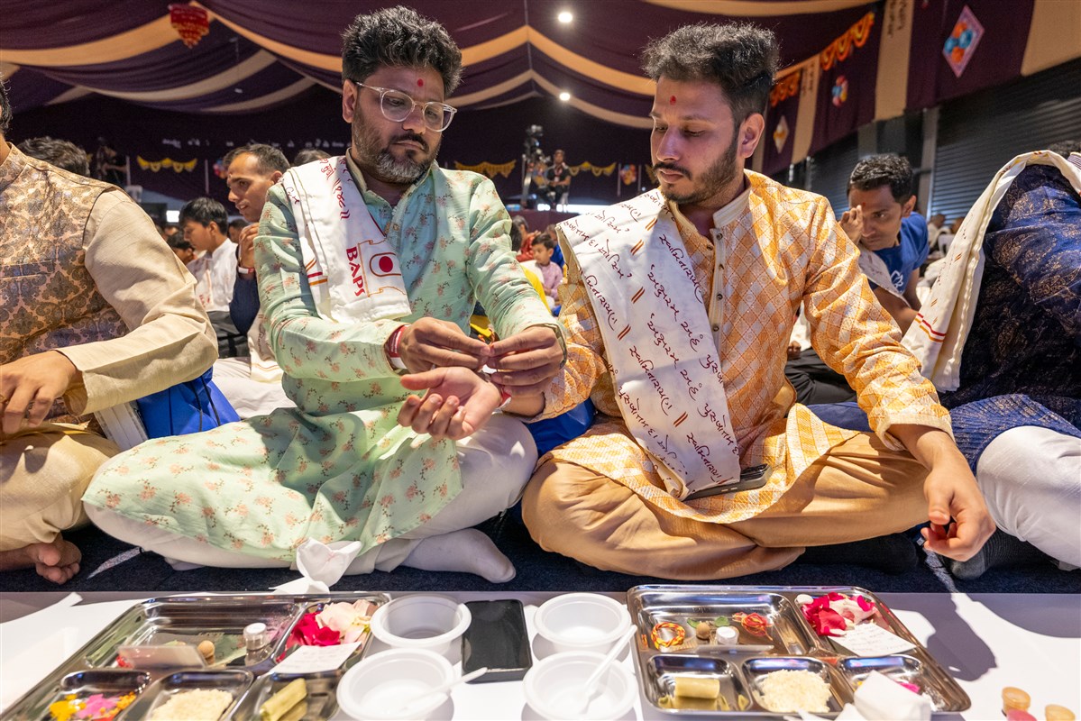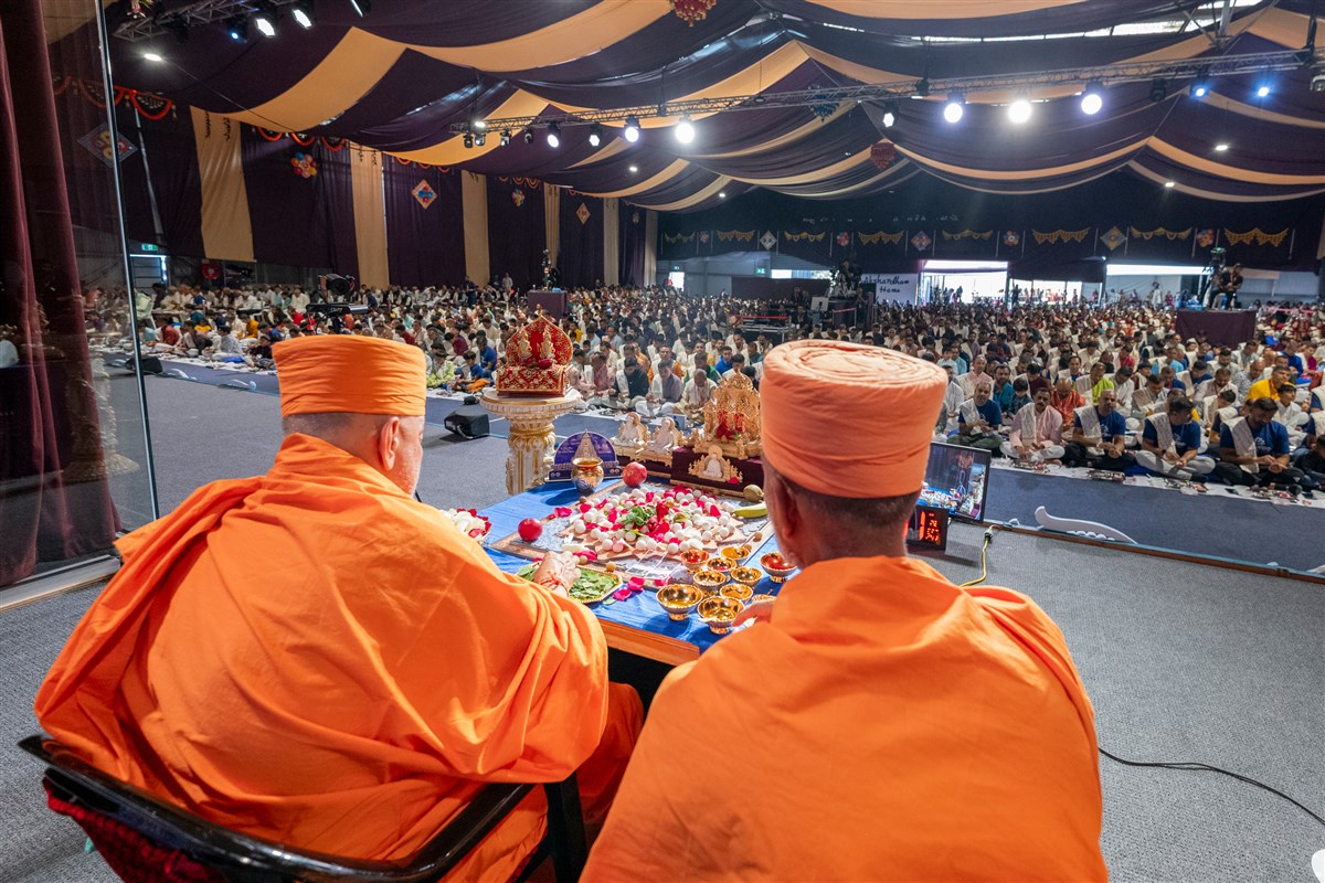 Pujya Ishwarcharan Swami and Paramchintan Swami perform the mahapuja rituals