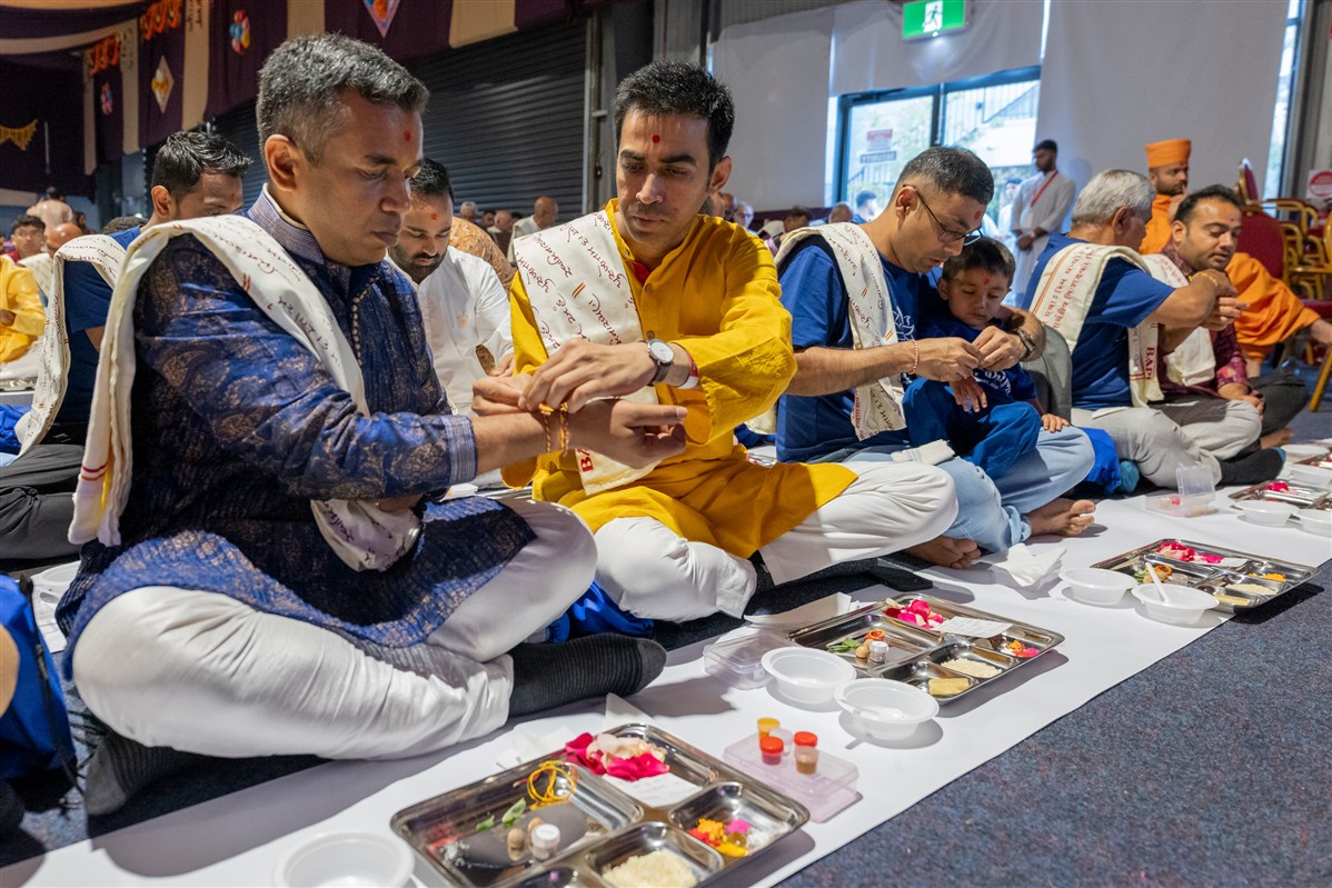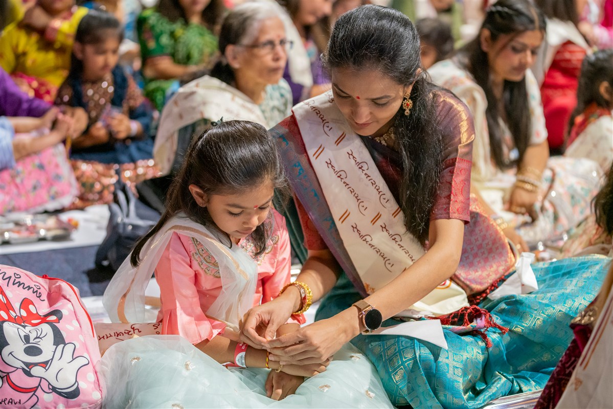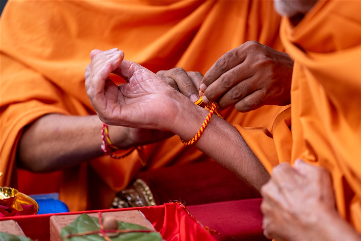 Shrijiswarup Swami ties a nadachhadi to Swamishri