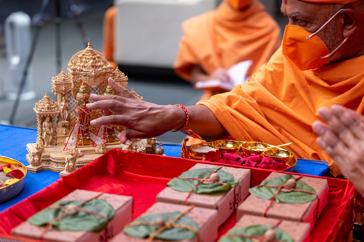 Paramchintan Swami performs the Bhumi Pujan mahapuja rituals