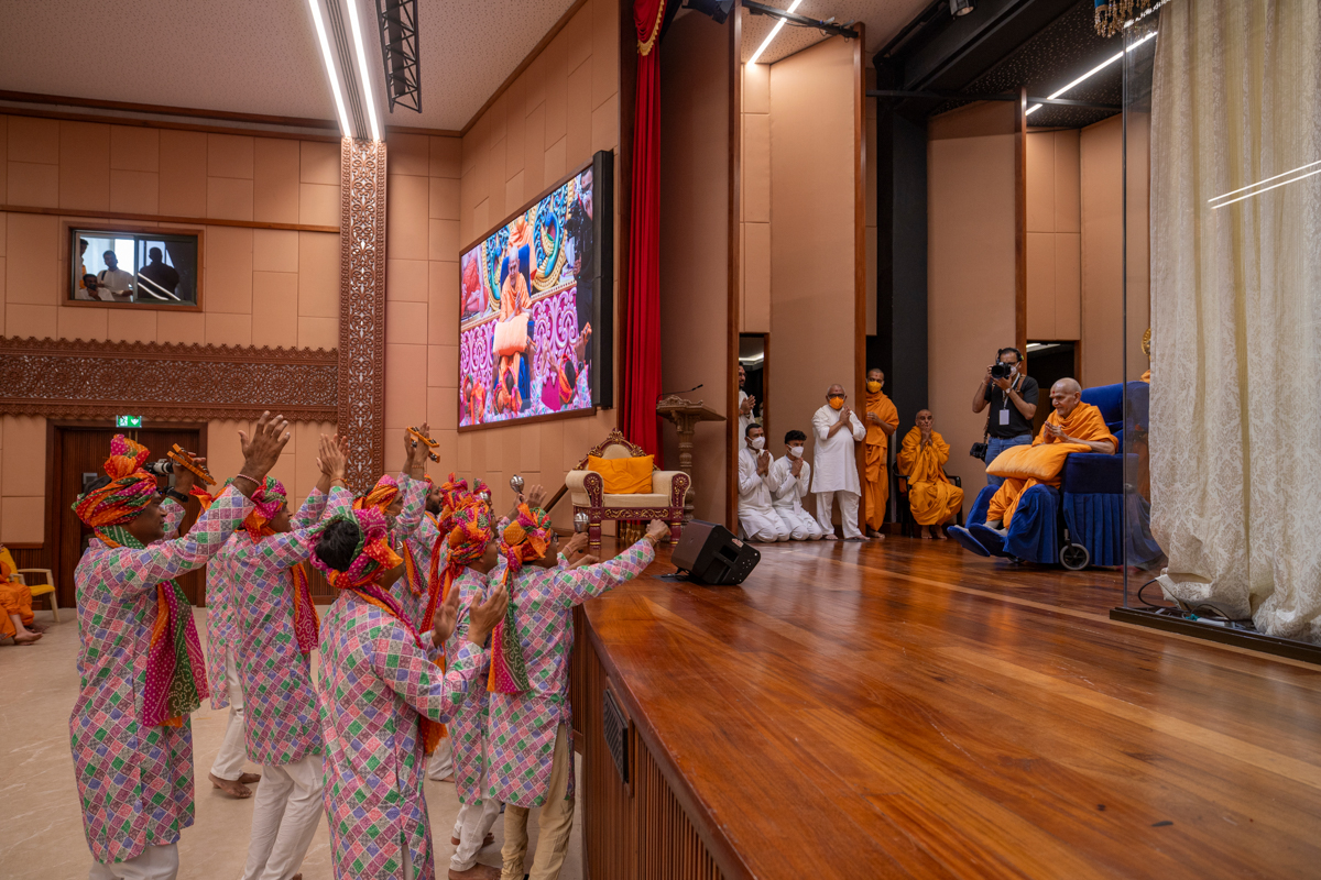 Swamishri visits the rang mandap (Prasadi Mandapam)
