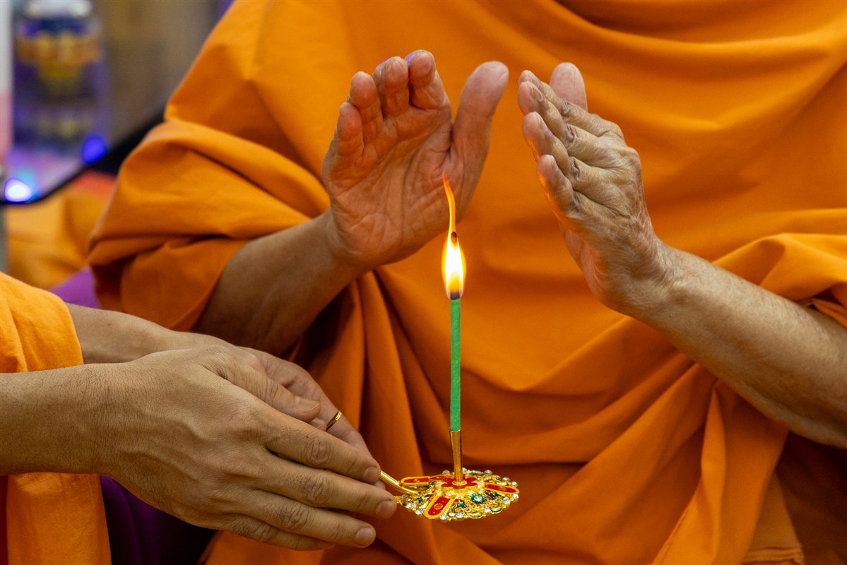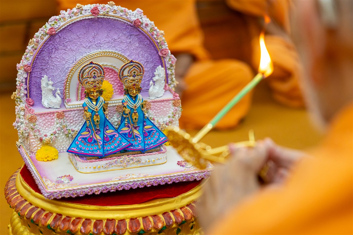 Morning worship rituals of Shri Harikrishna Maharaj and Shri Gunatitanand Swami Maharaj