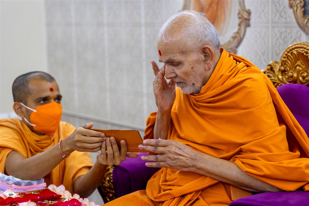Param Pujya Mahant Swami Maharaj performs his daily puja