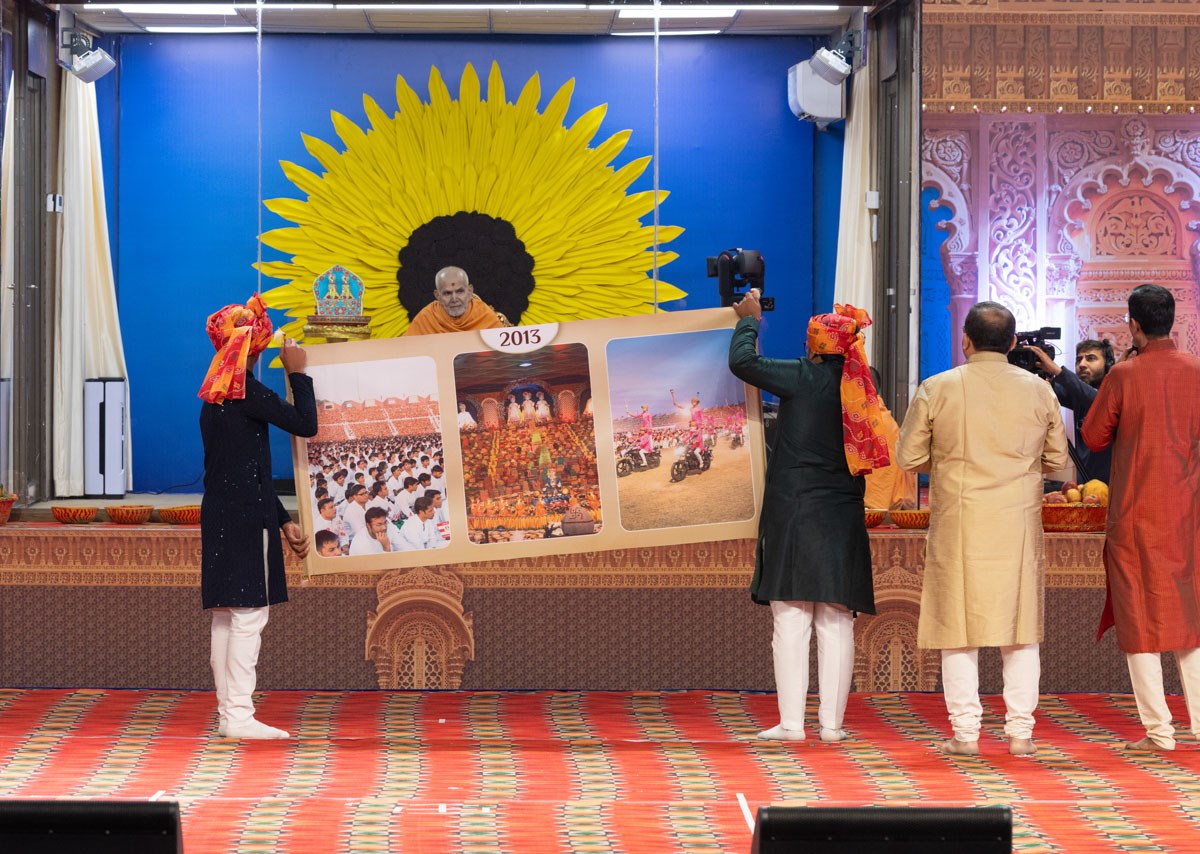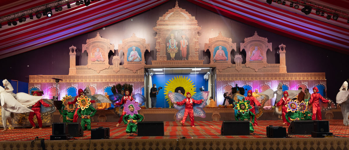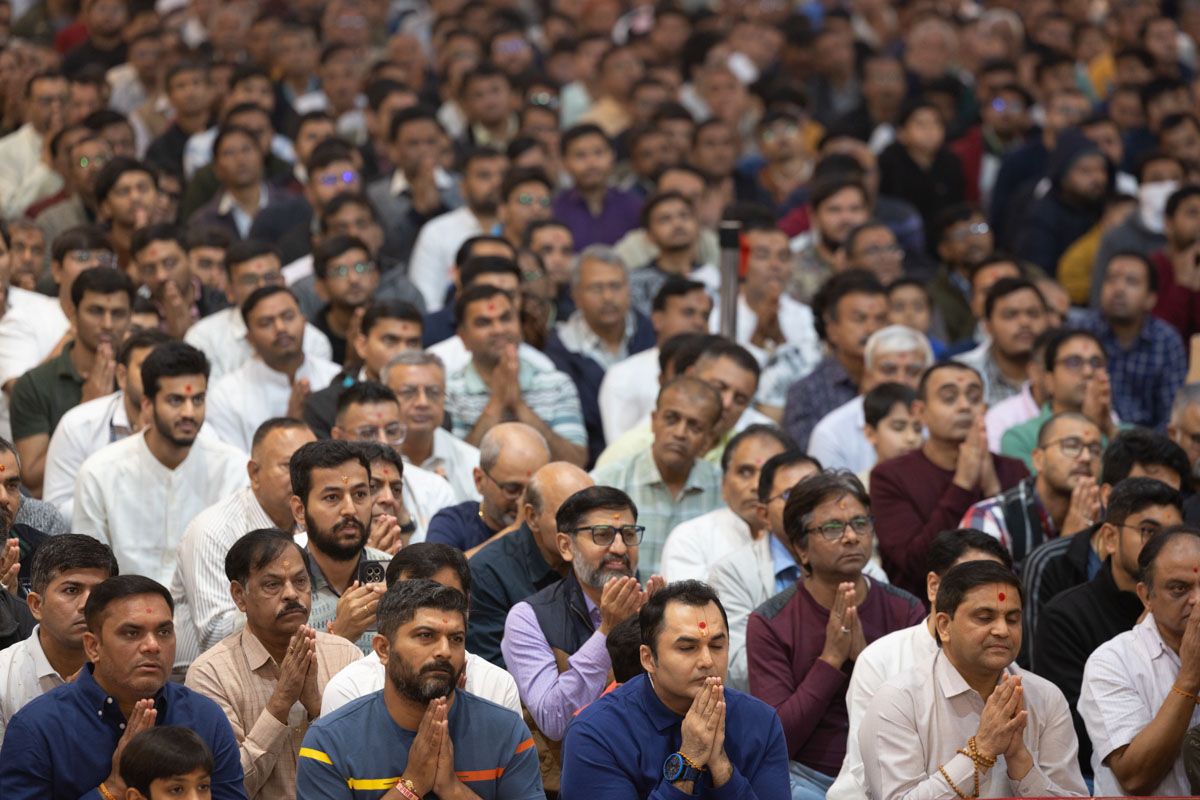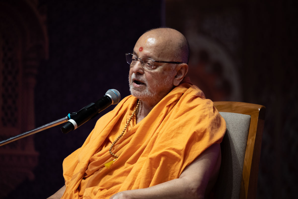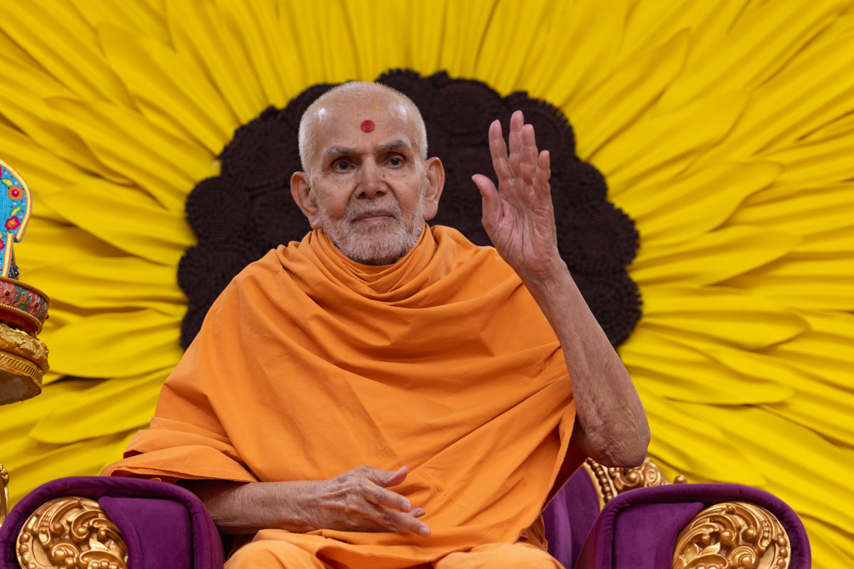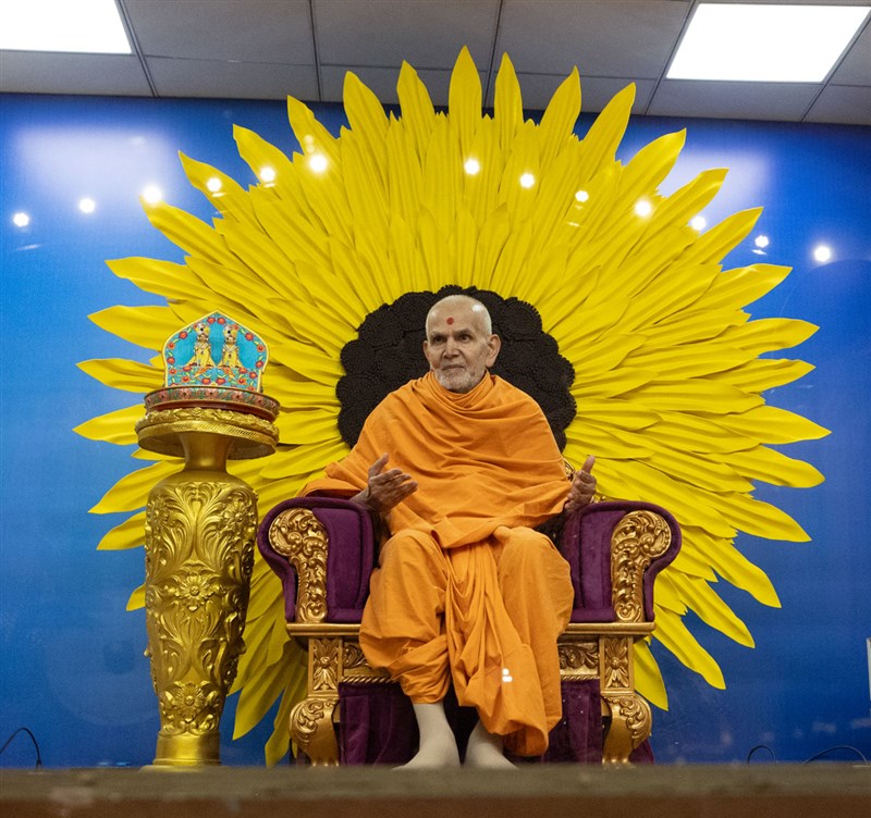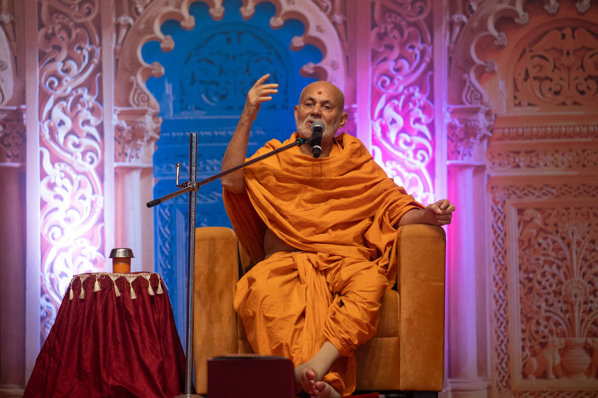 Balaks lead everyone in reciting the sadhana mantra and daily prayer in Swamishri's puja