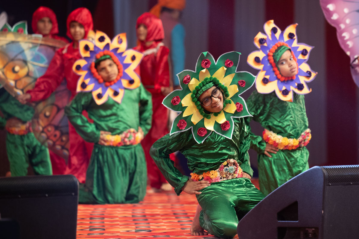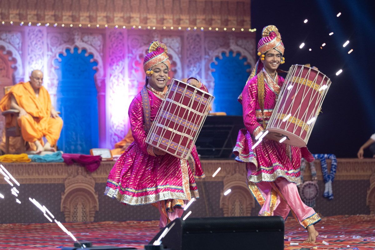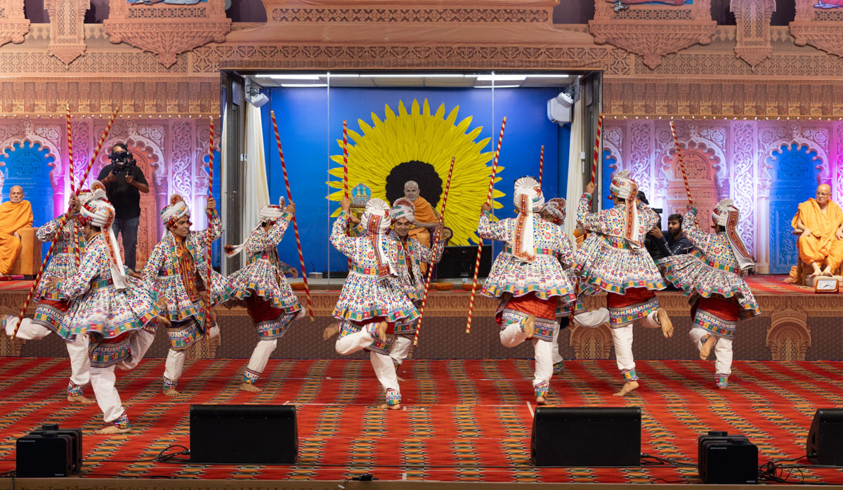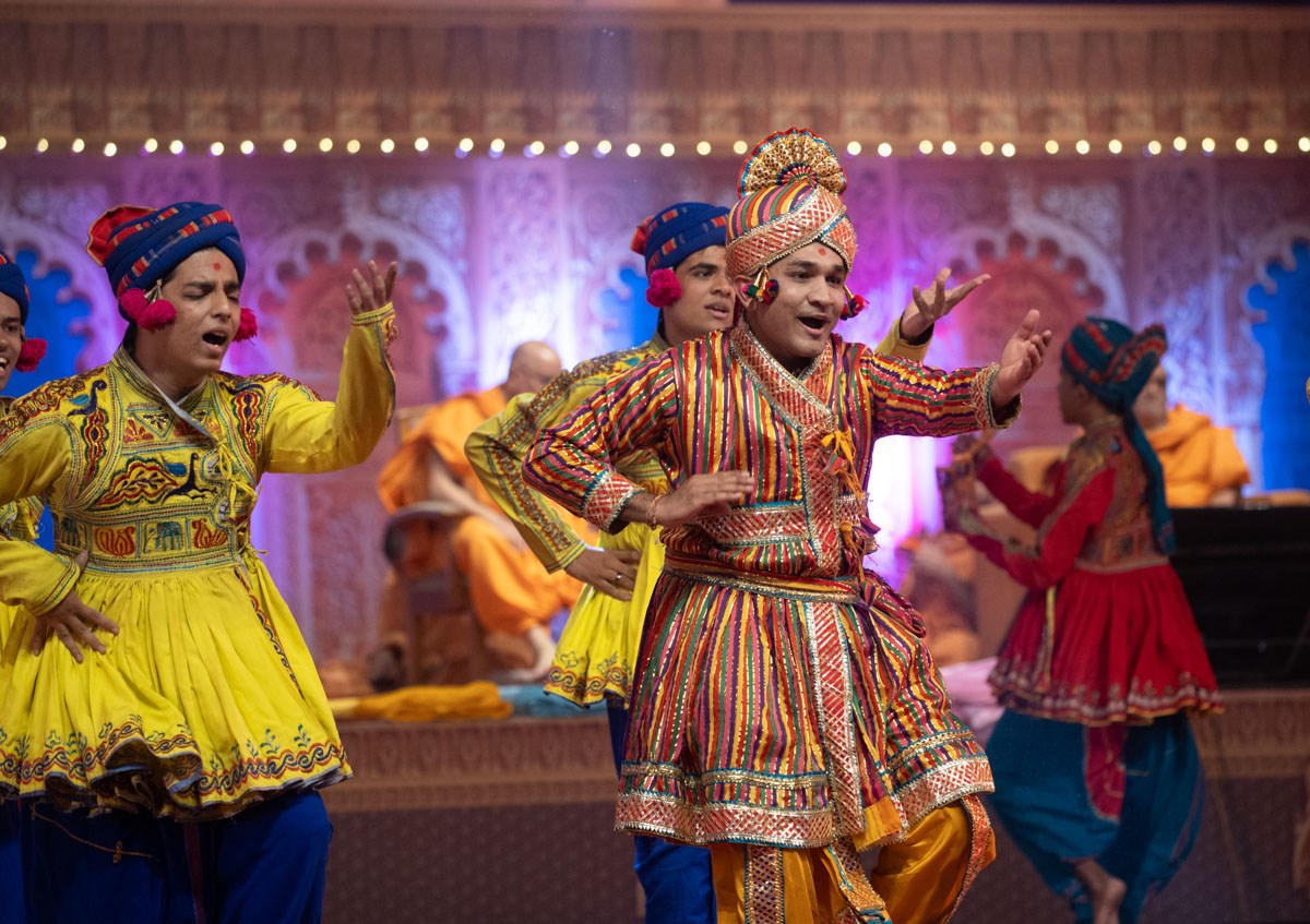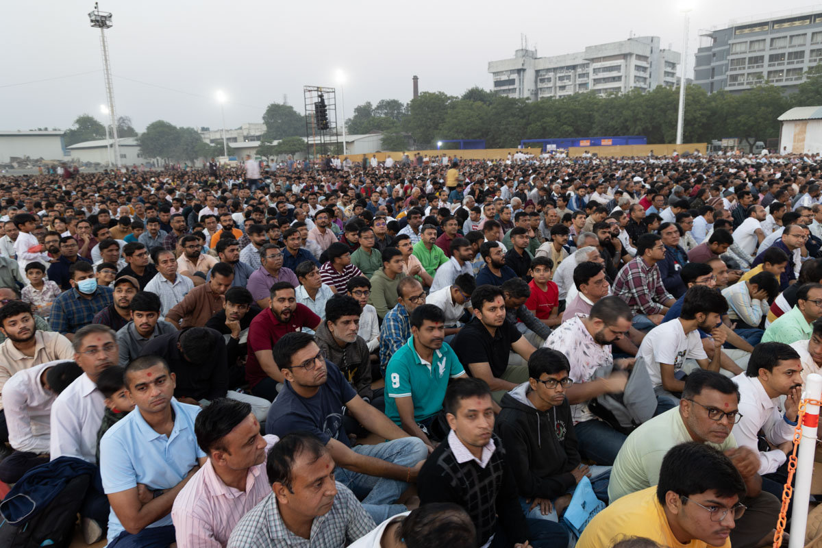 Yuvaks sing kirtans at the beginning of the evening assembly