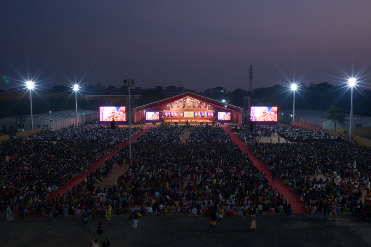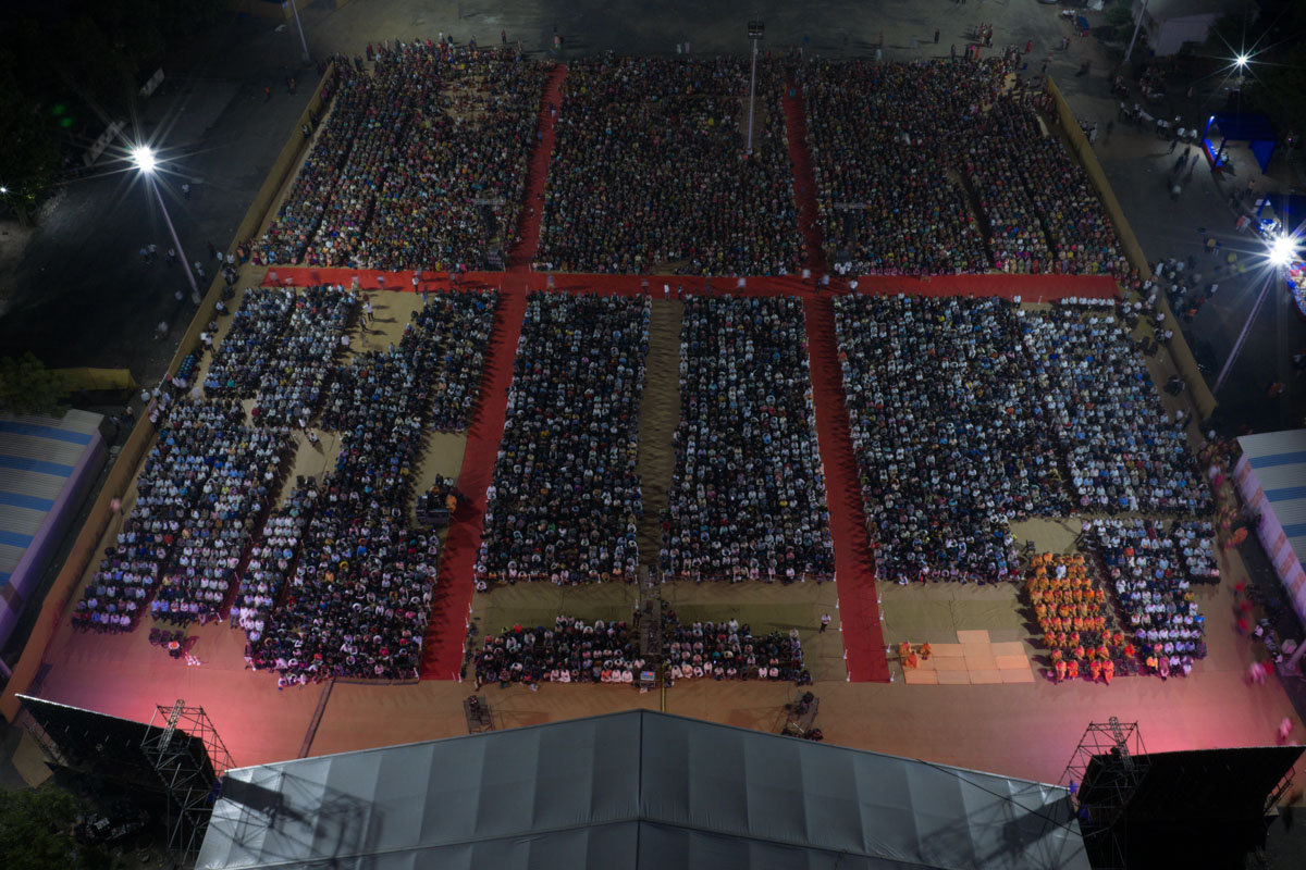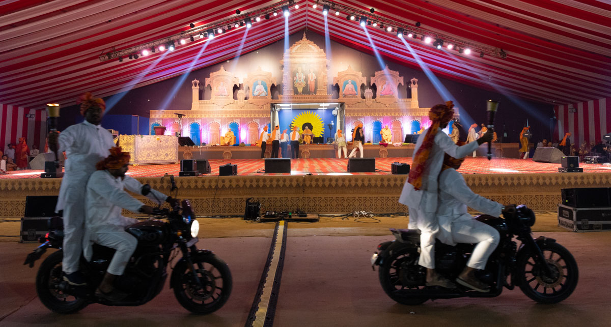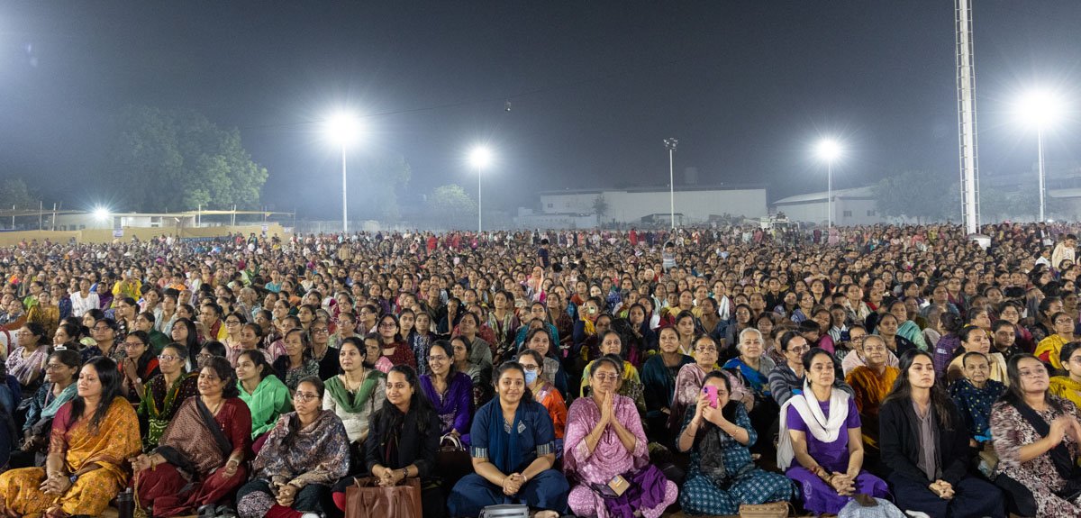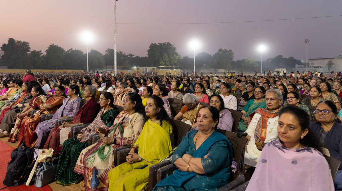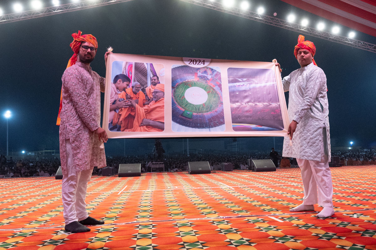 Pujya Ishwarcharan Swami and Shrihari Swami on the stage during the assembly