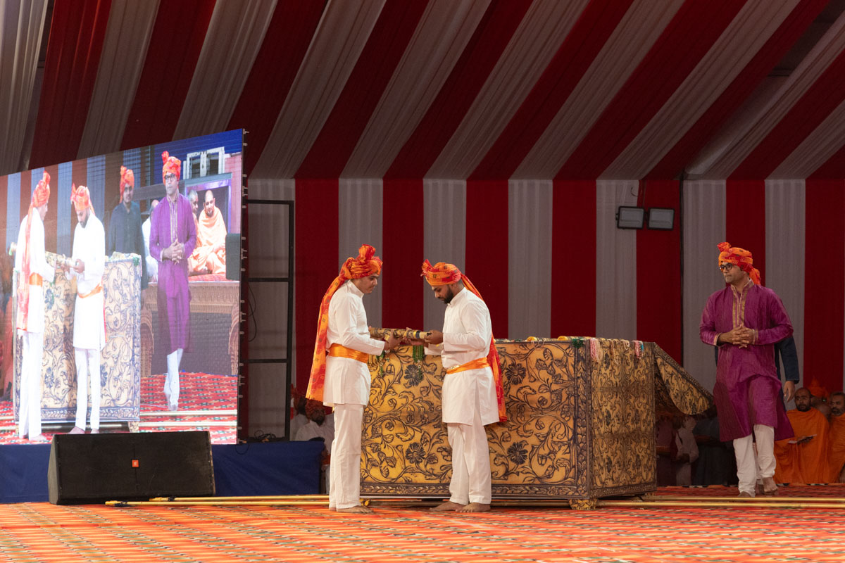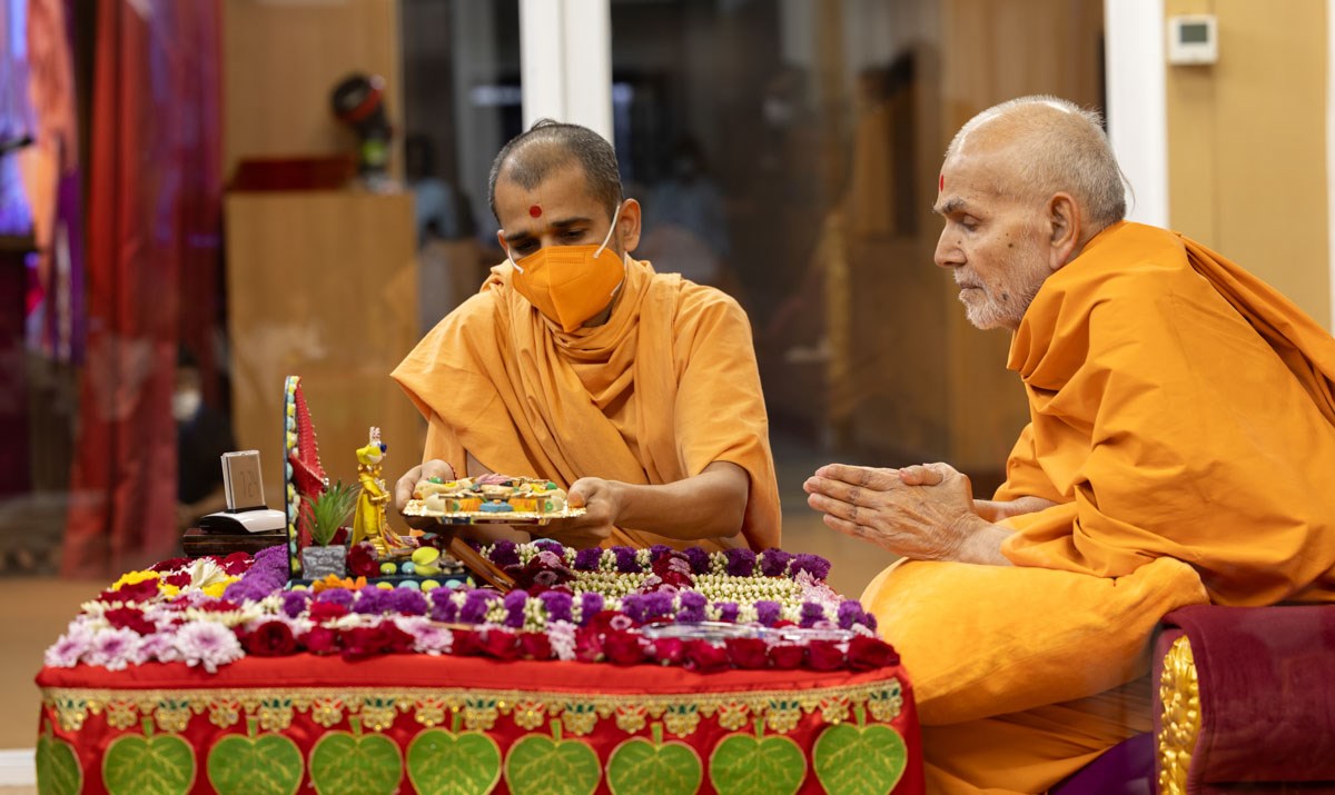 Thal is offered to Shri Harikrishna Maharaj and Shri Gunatitanand Swami Maharaj