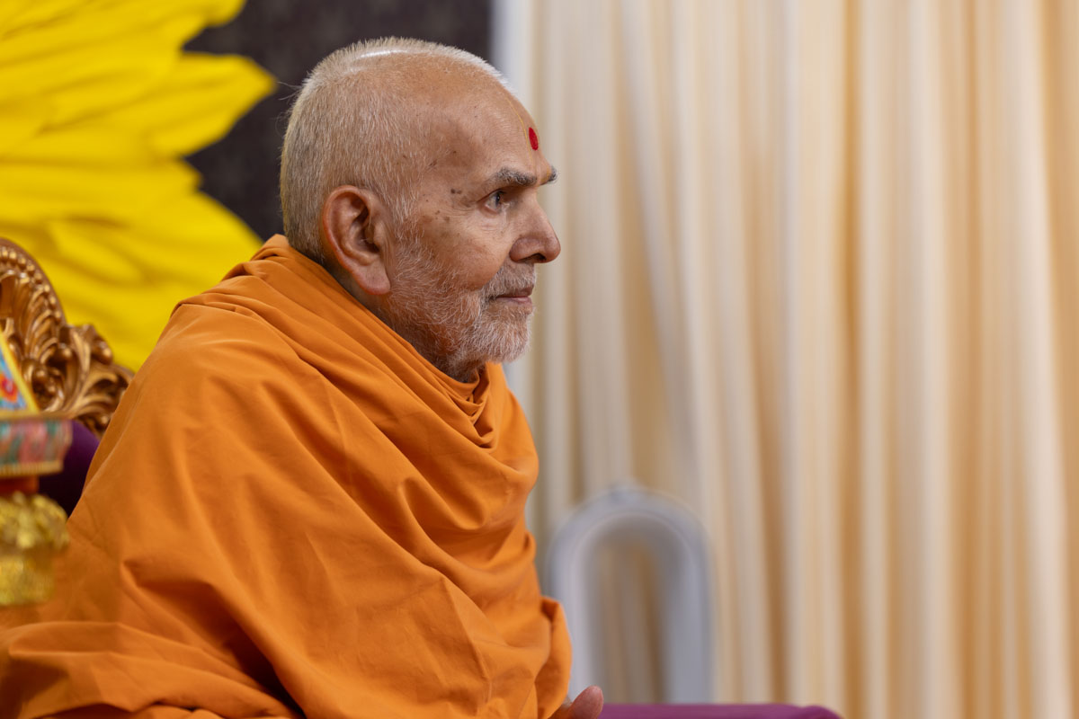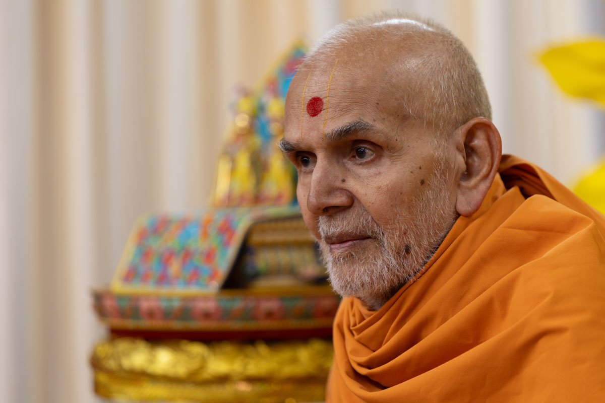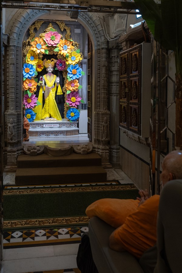 Swamishri engrossed in darshan of Shri Ghanshyam Maharaj