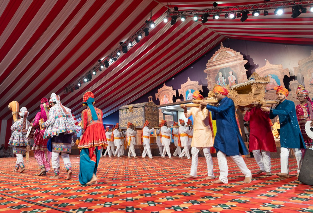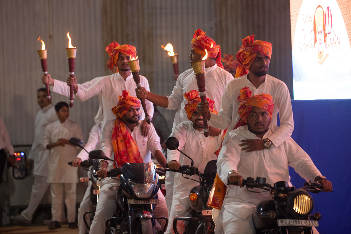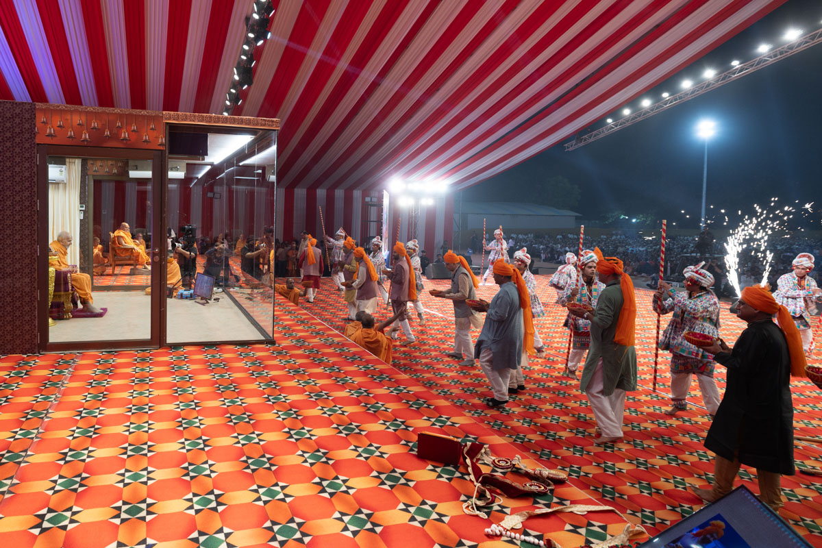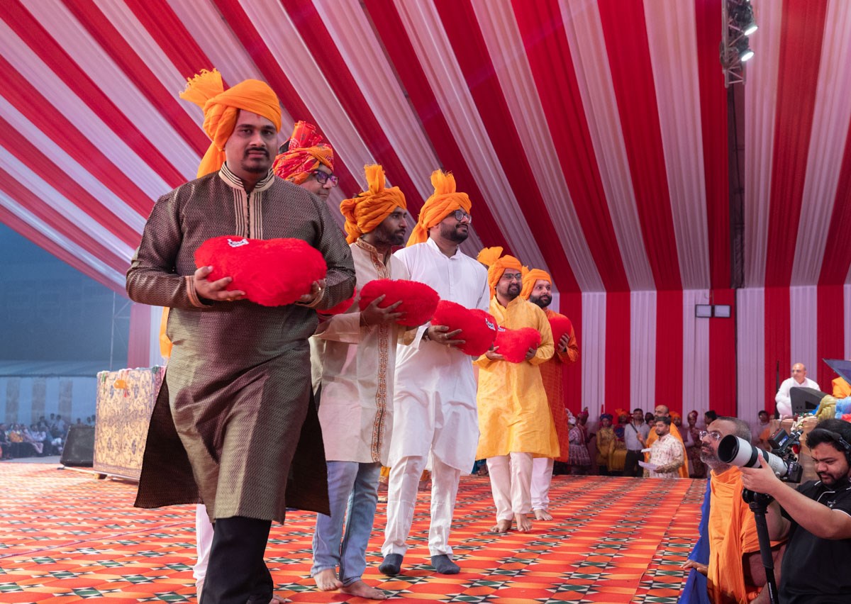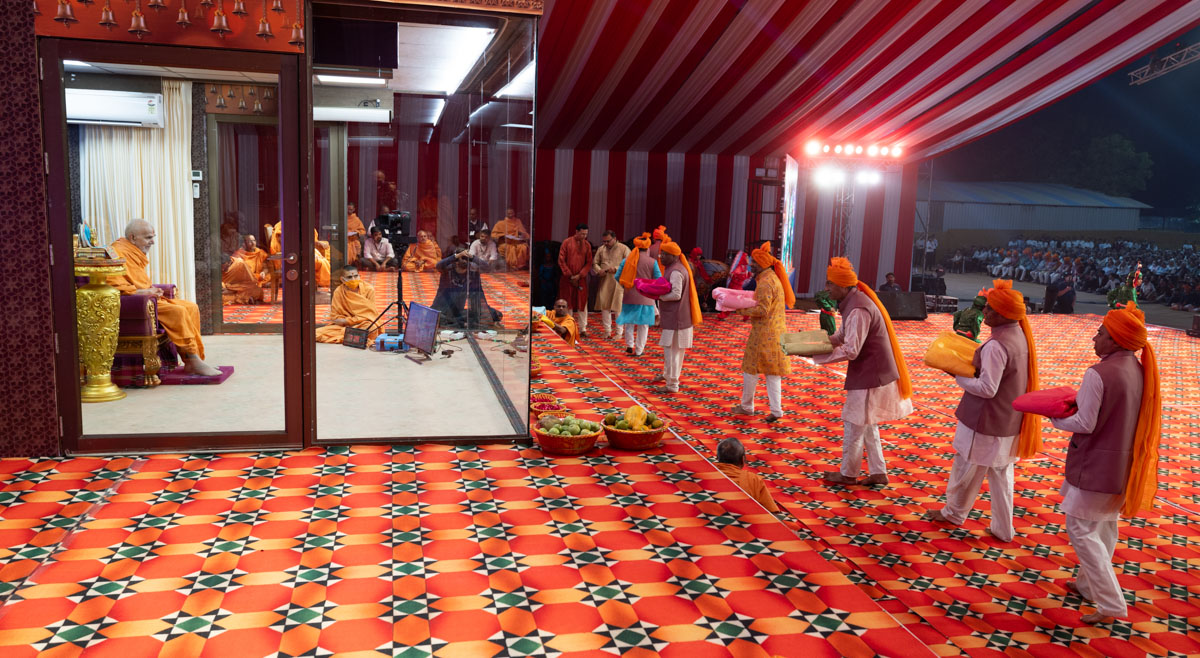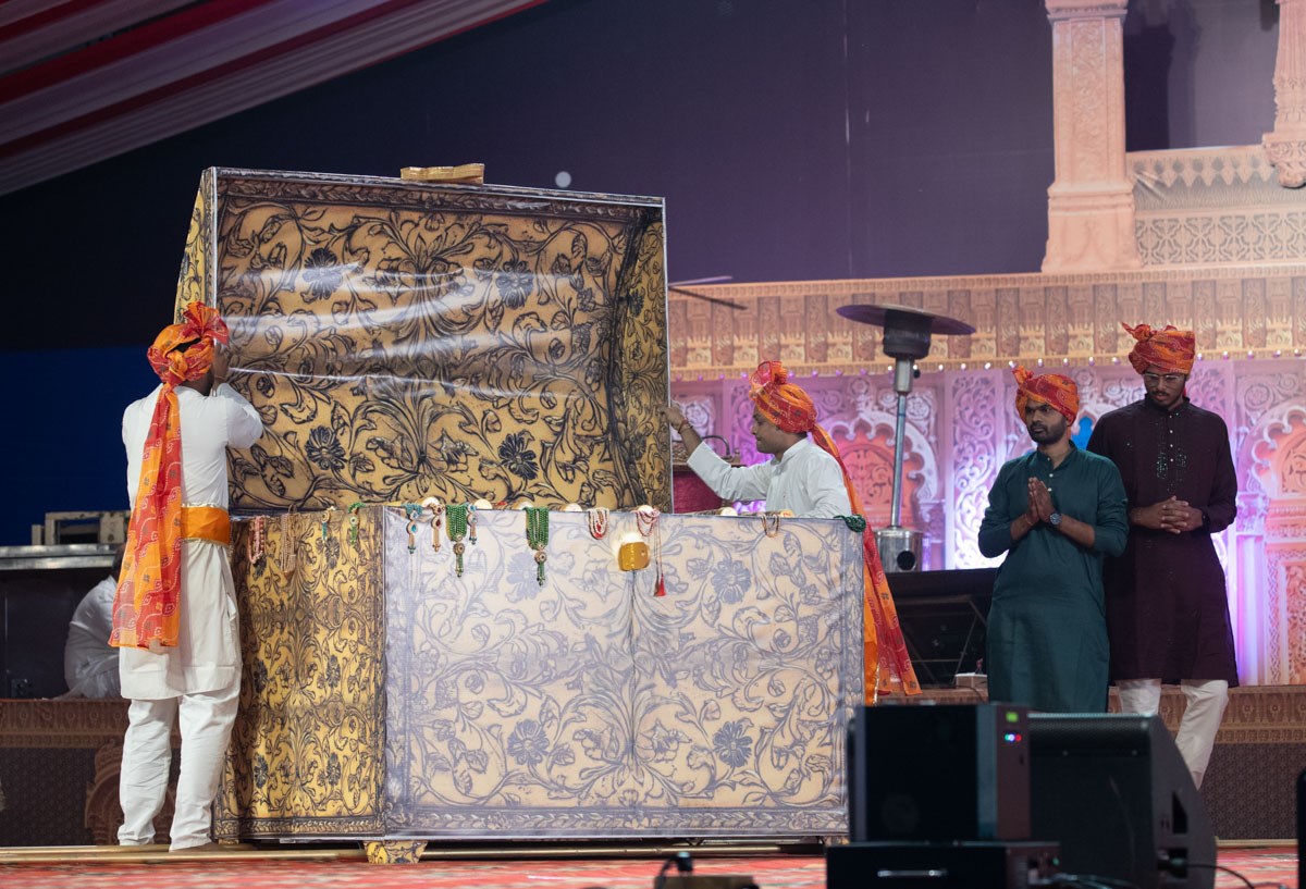 Swamishri performs the murti-pratishtha rituals of the murtis for Shri Ramji Mandir, Palaj, India