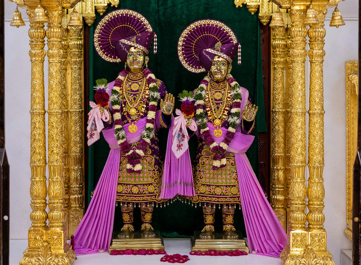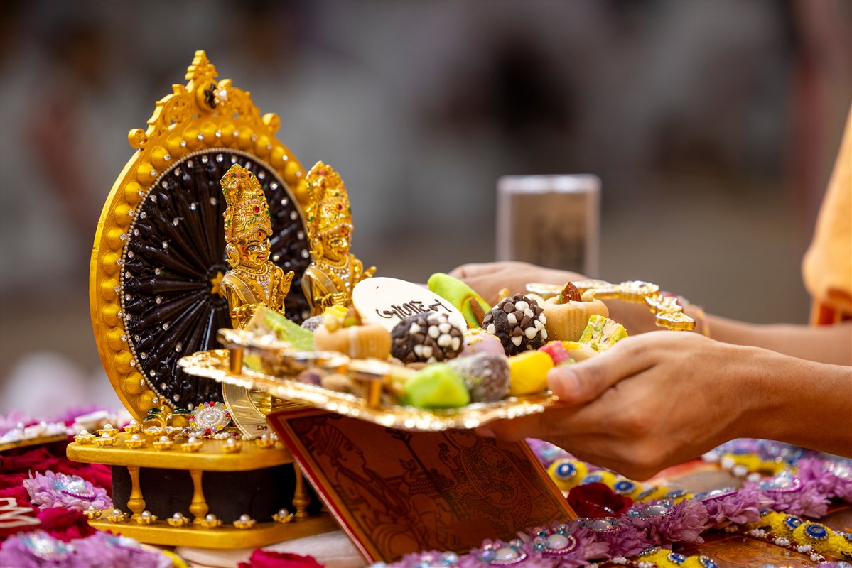 Swamishri offers thal to Shri Harikrishna Maharaj and Shri Gunatitanand Swami Maharaj