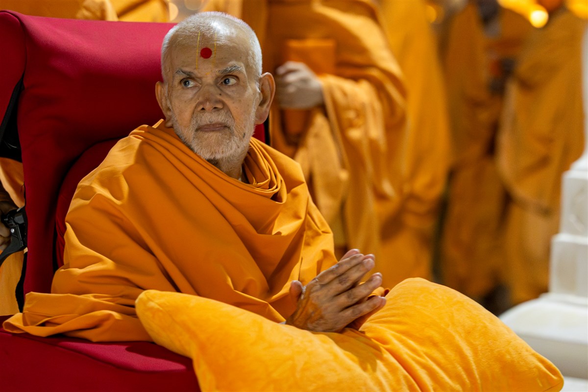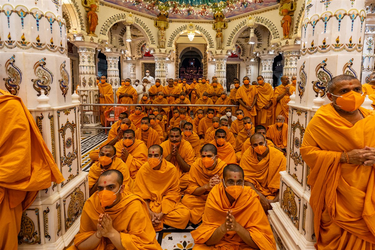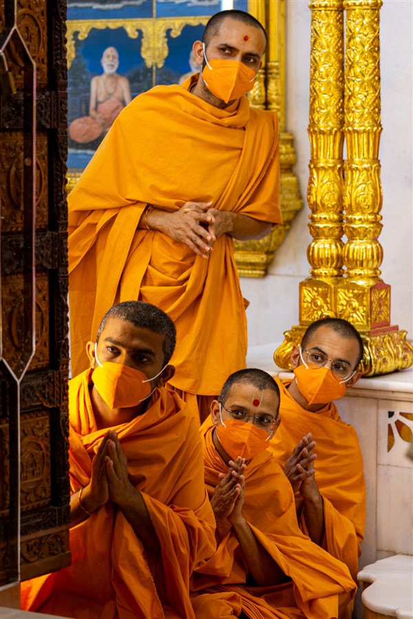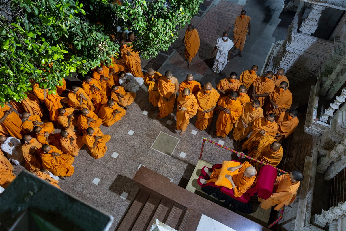 Swamis doing darshan of Param Pujya Mahant Swami Maharaj