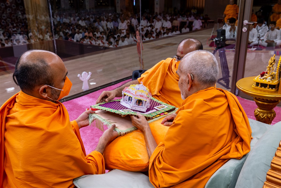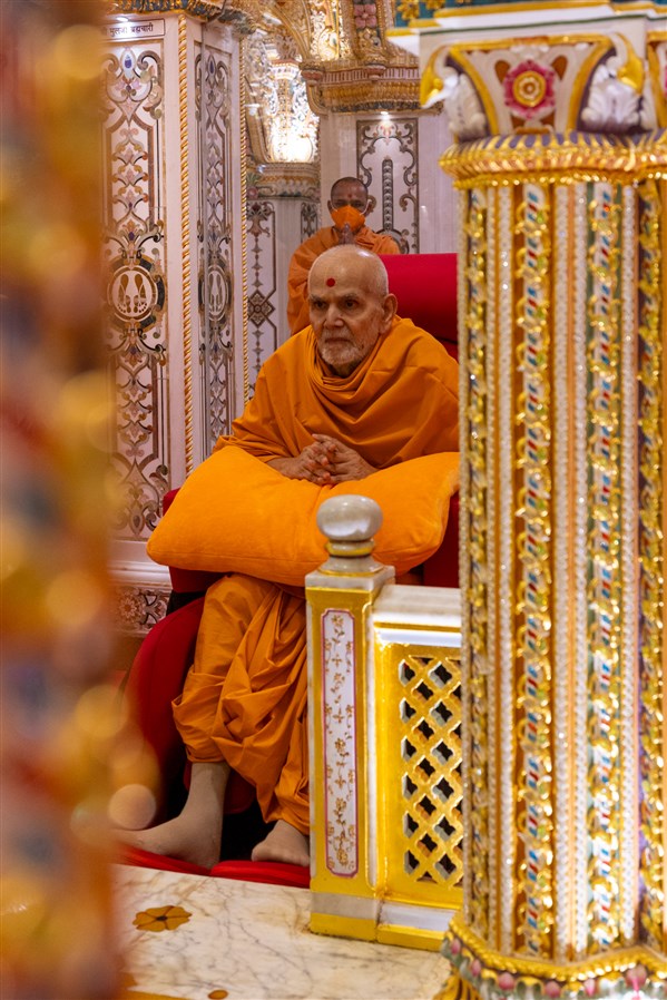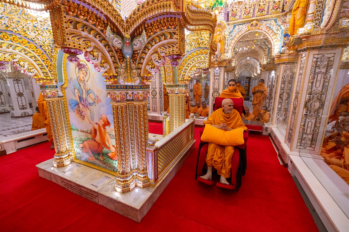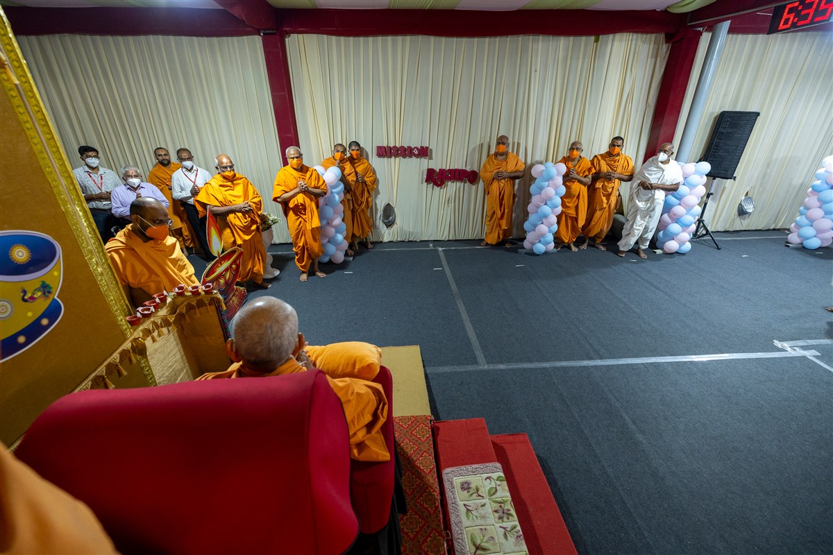 Swamis doing darshan of Param Pujya Mahant Swami Maharaj