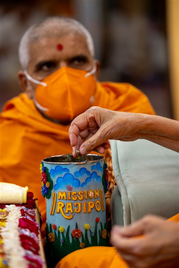 A karyakar presents before Swamishri