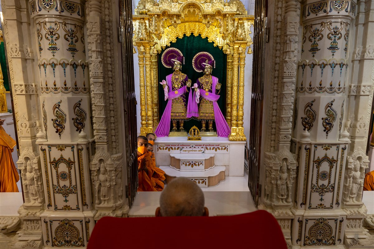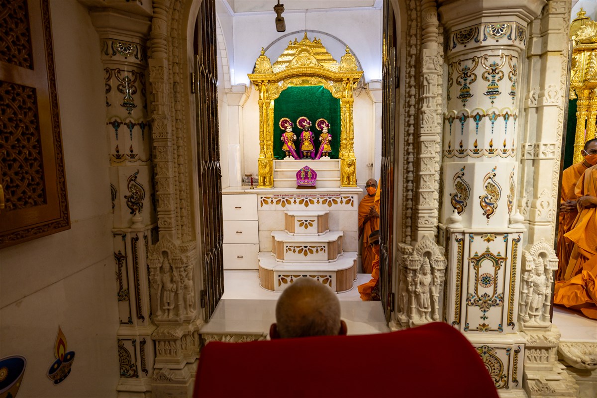Swamis doing Swamishri's puja darshan