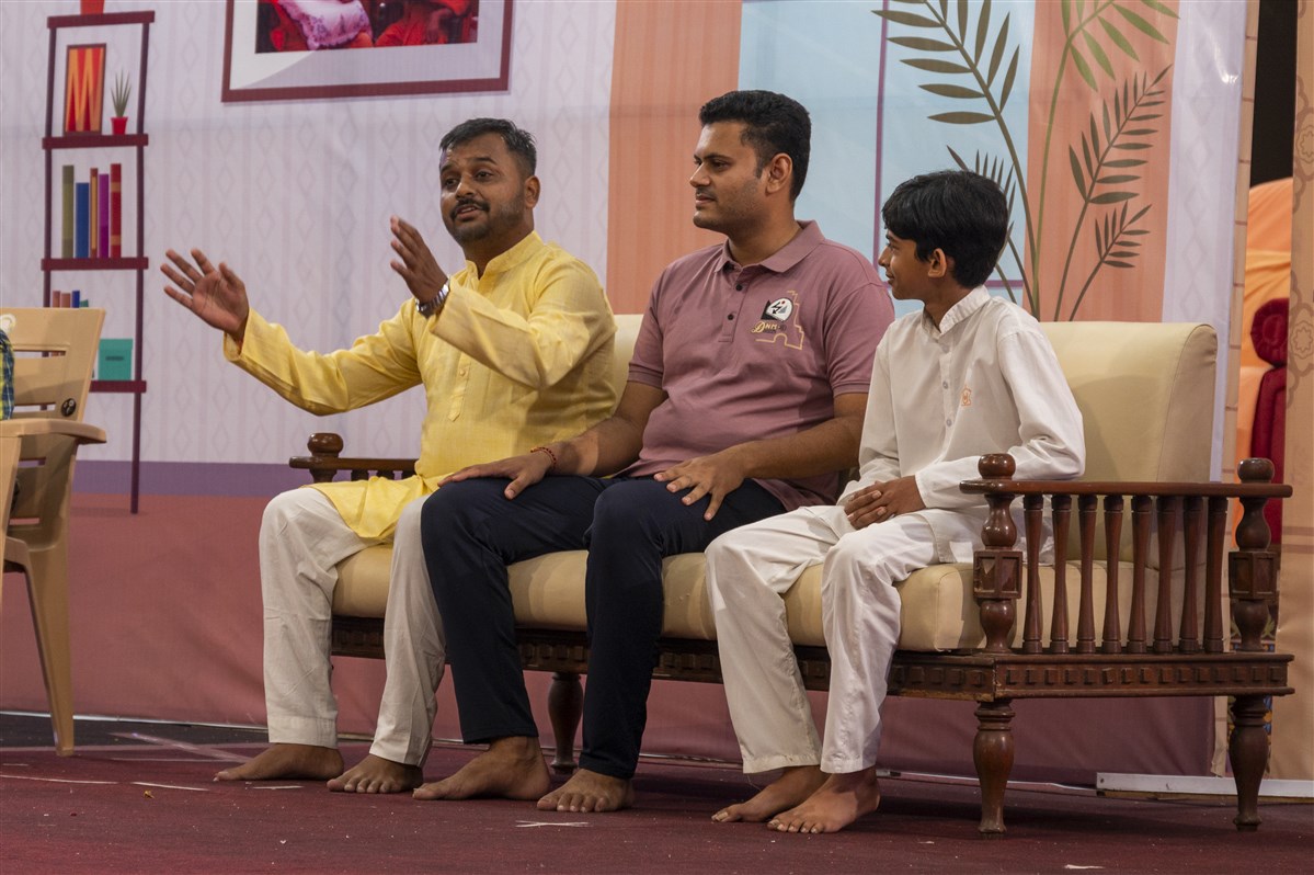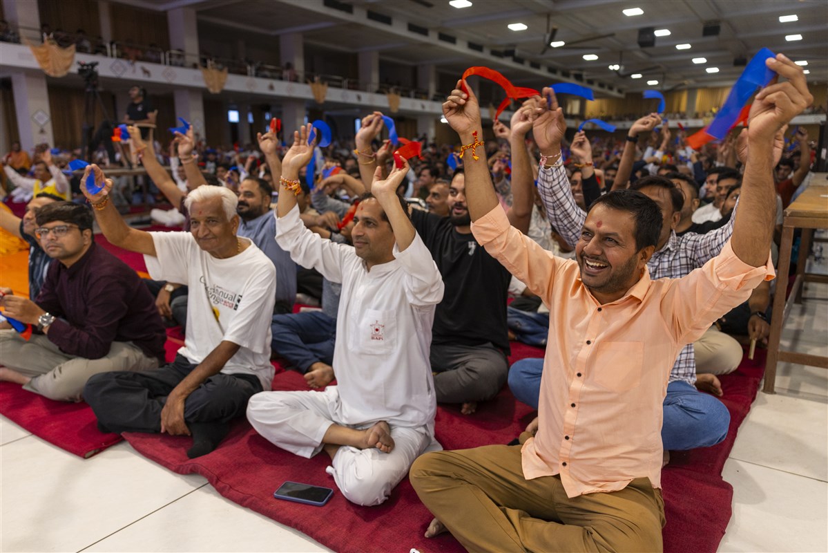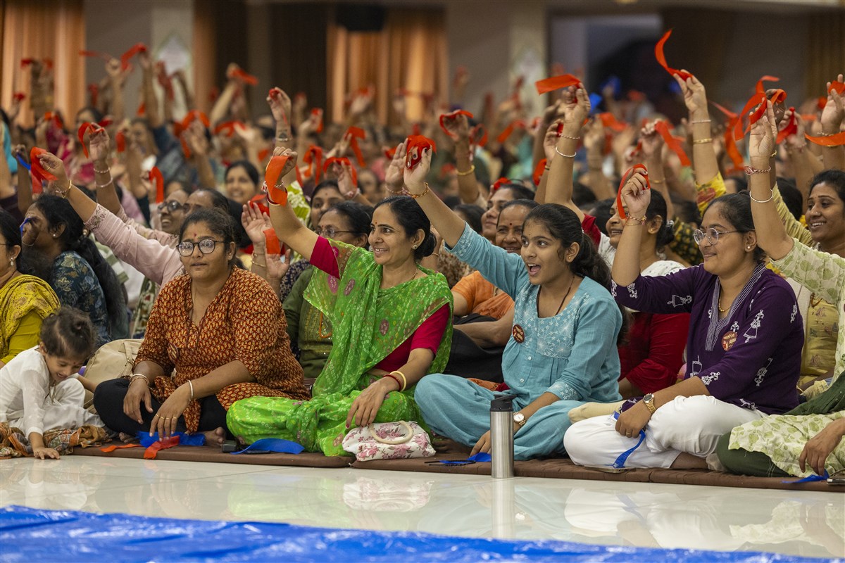 Devotees participate in an interactive session