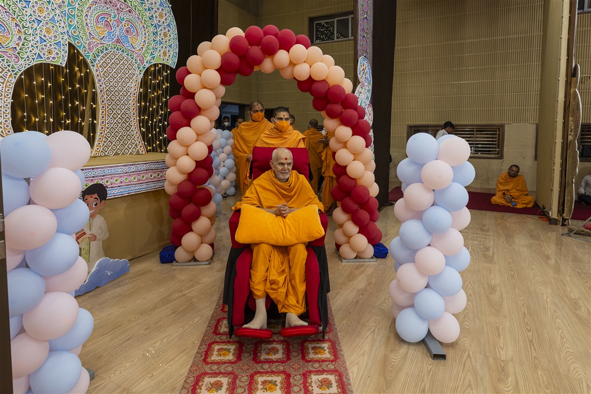 Swamishri arrives in the assembly