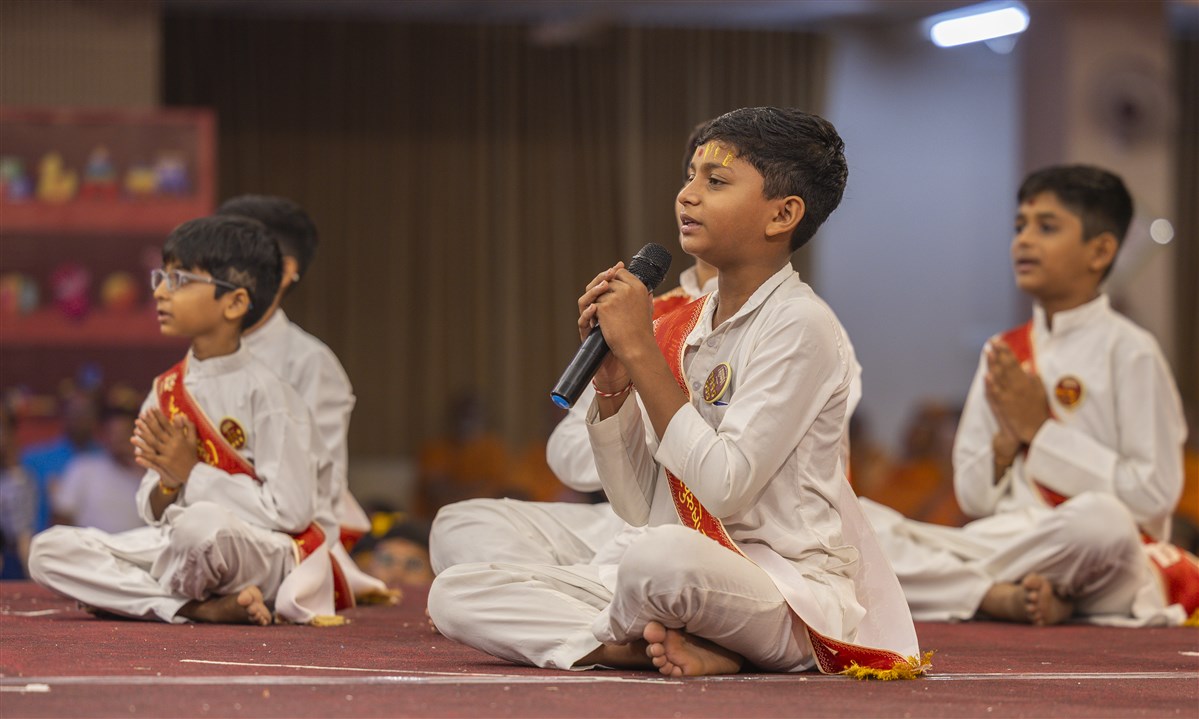 A balak recites shlokas during an interaction session