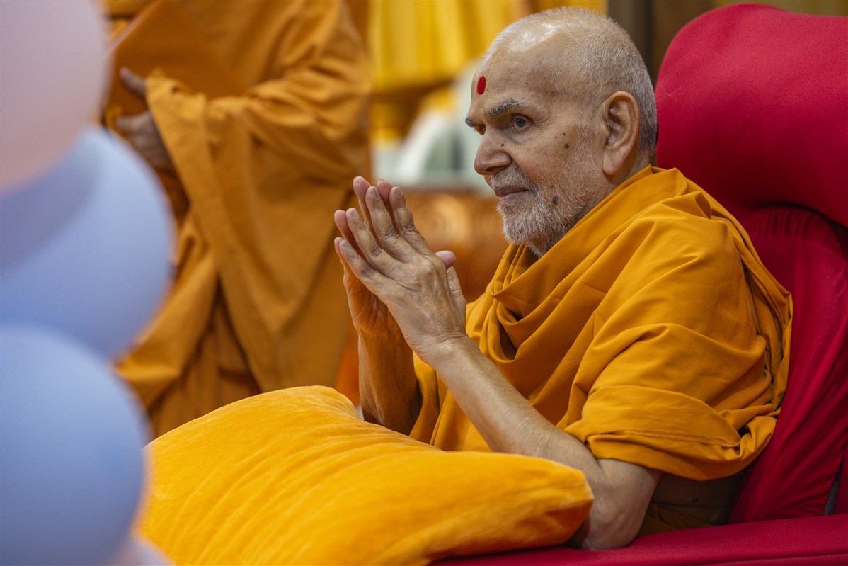 Swamishri greets all with folded hands
