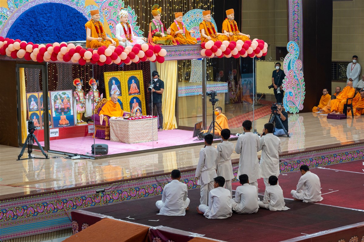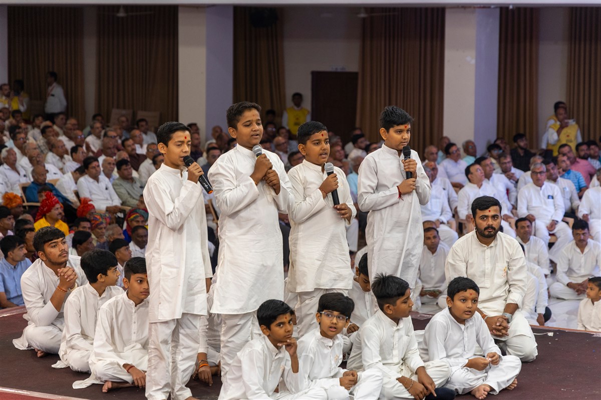 Children recite scriptural passages in Swamishri's puja