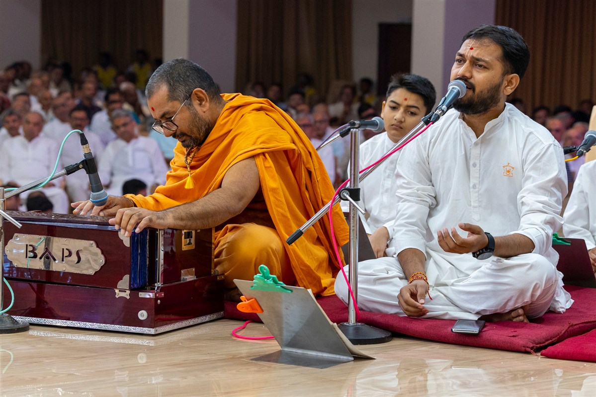 A yuvak sings a kirtan in Swamishri's daily puja
