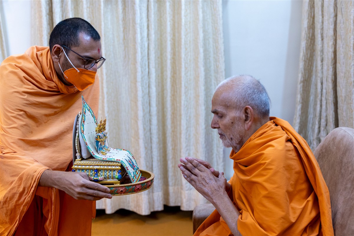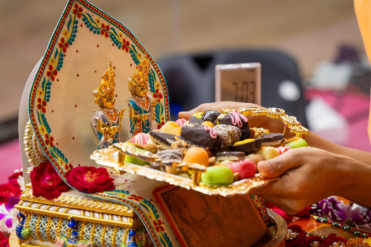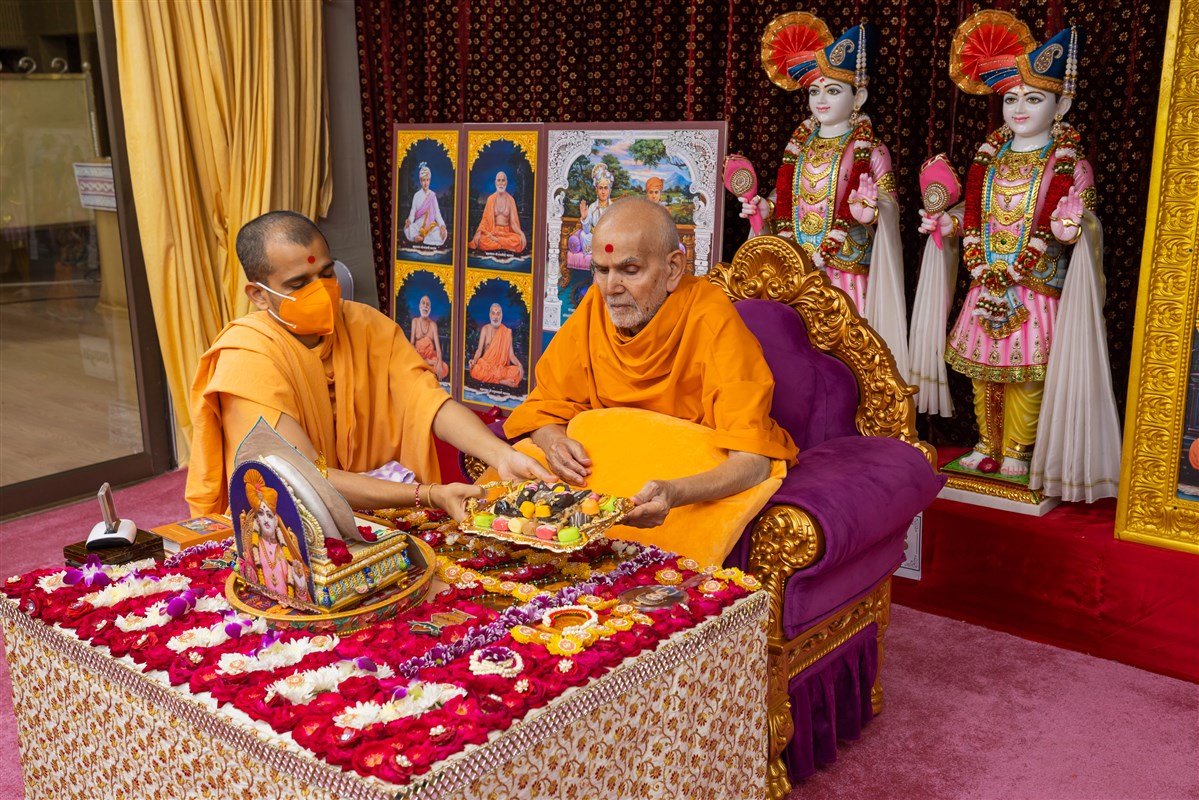 Swamishri offers thal to Thakorji