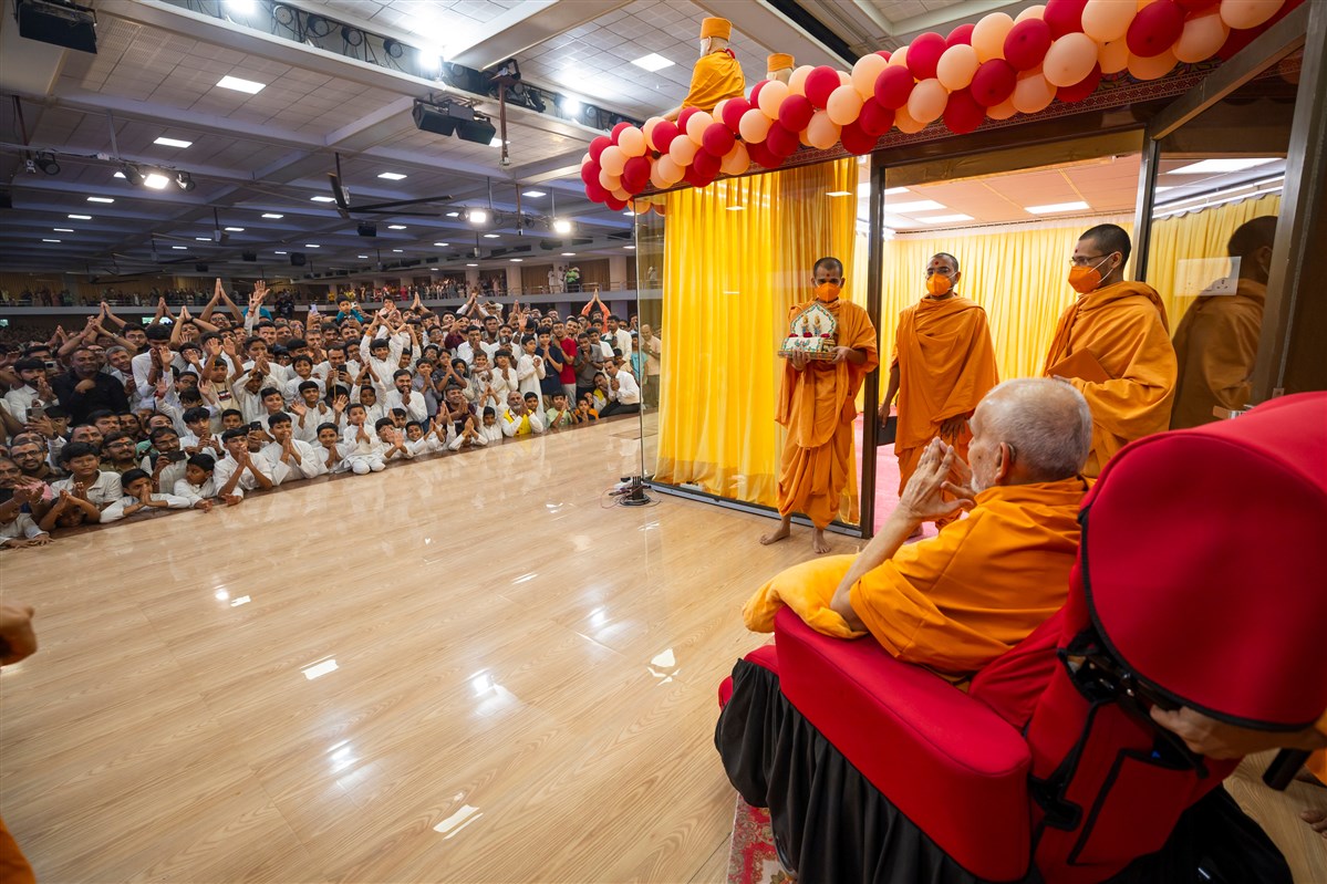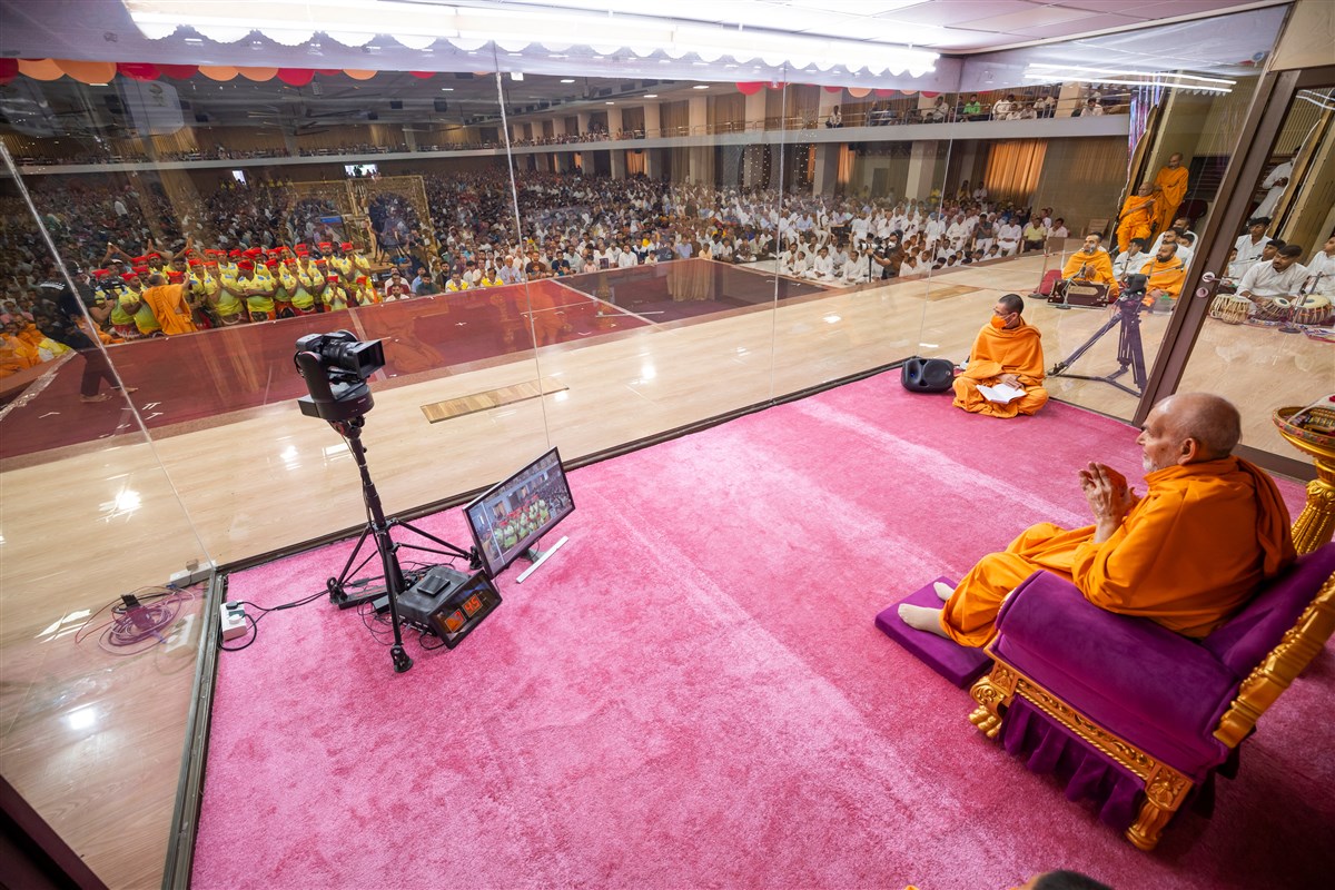Swamishri greets all with folded hands