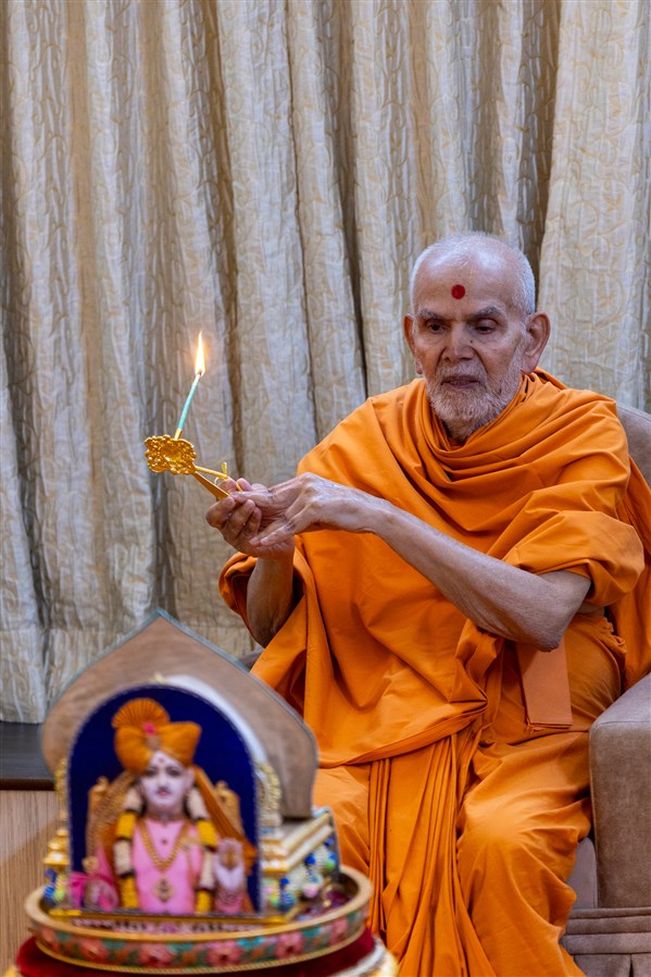 Swamishri performs the arti