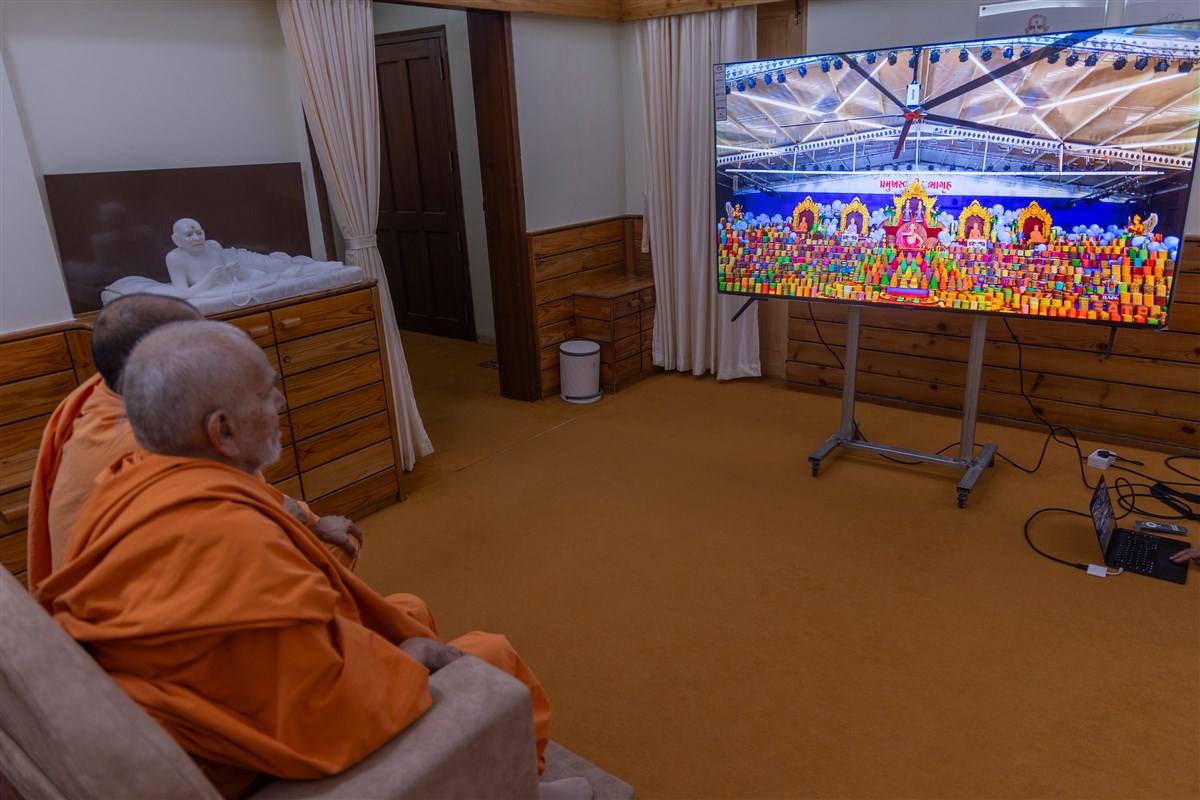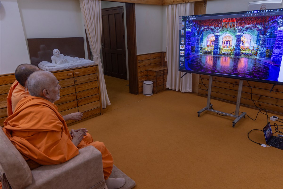 Swamis doing Swamishri's puja darshan