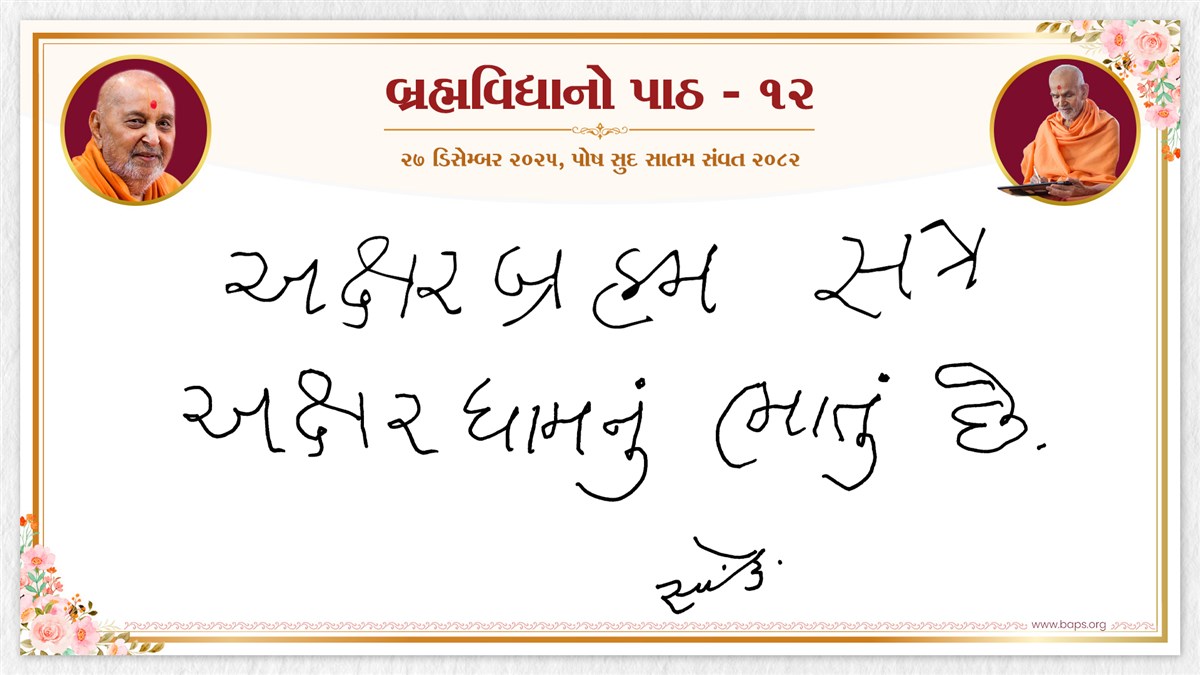 Aksharbrahma Satra Akshardhamnu Bhatu Chhe.