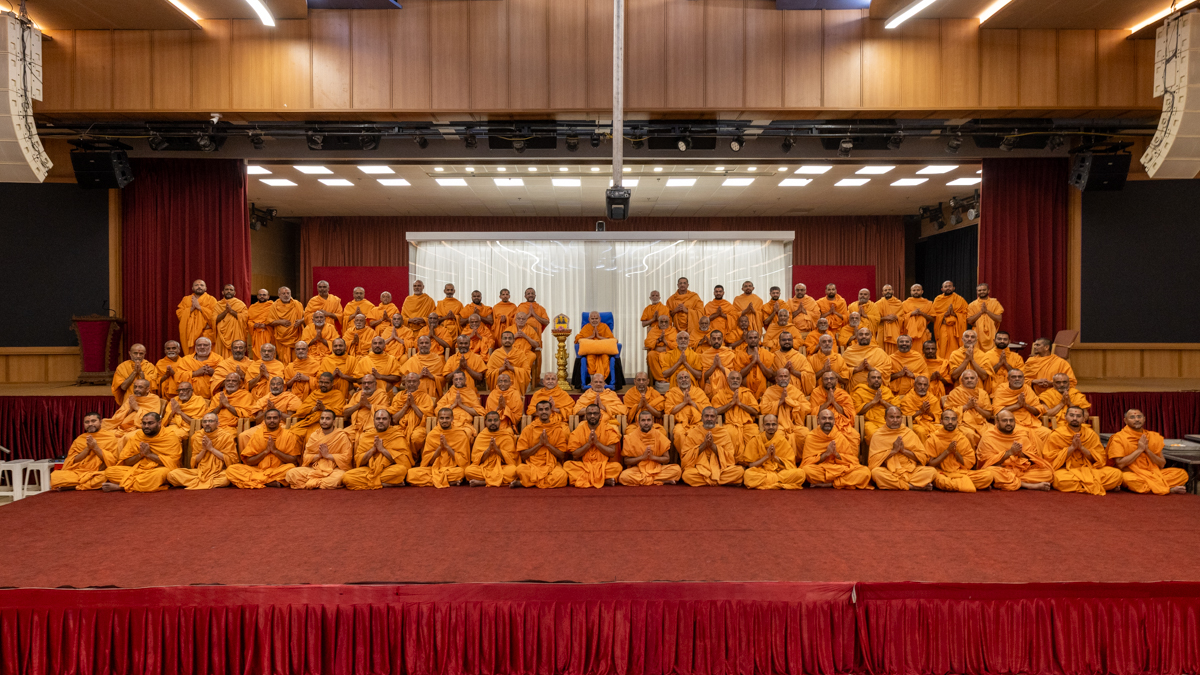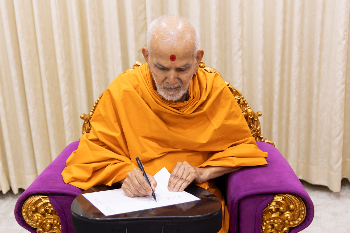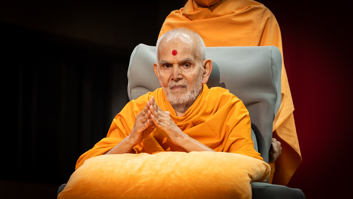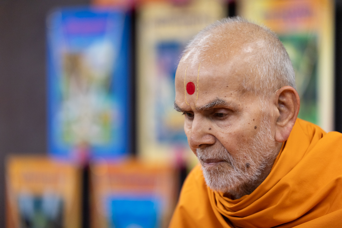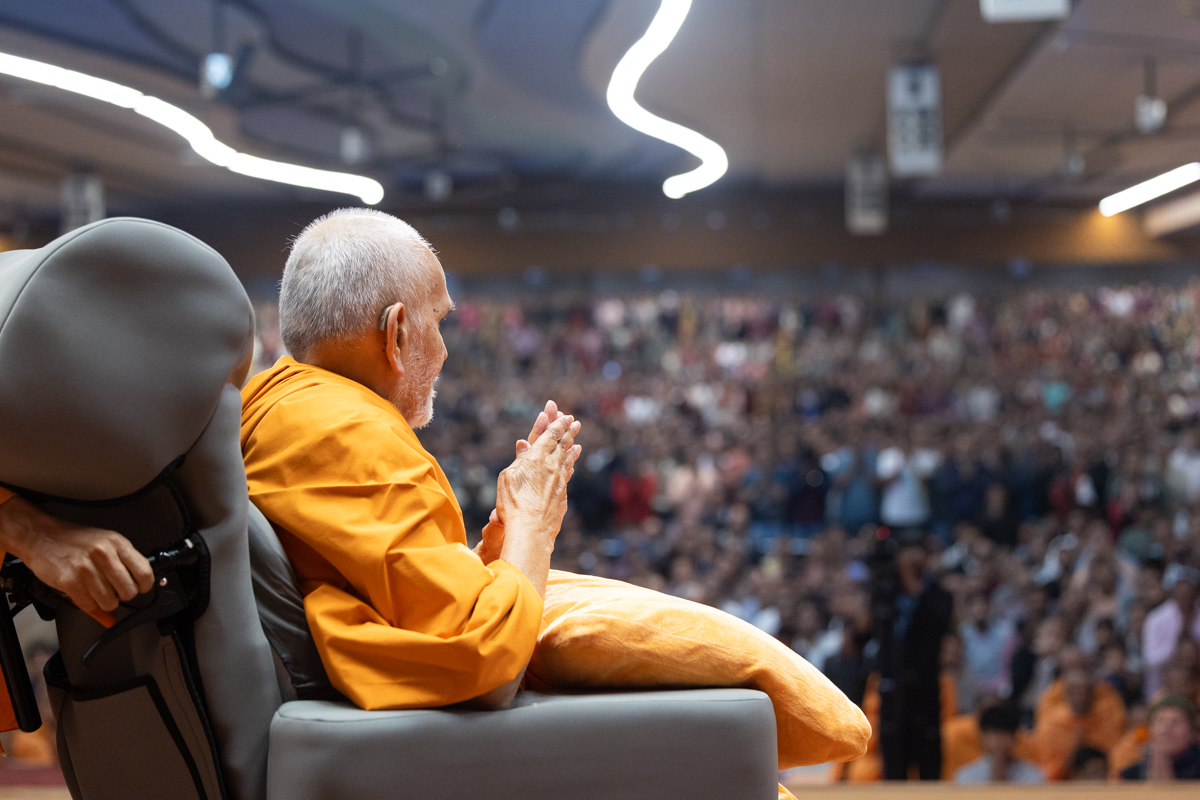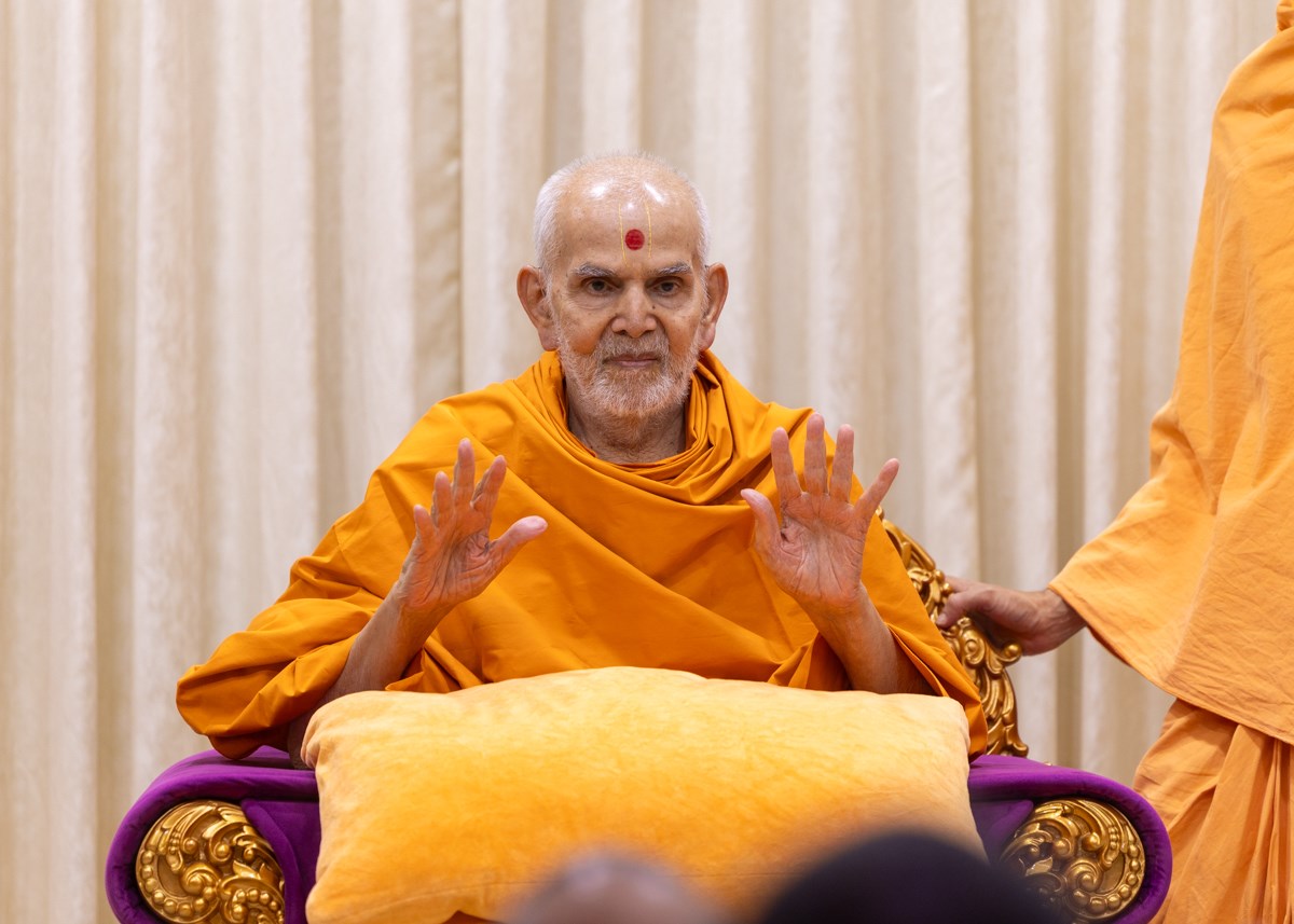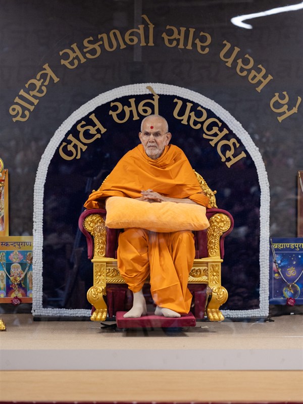 Param Pujya Mahant Swami Maharaj arrives to perform his daily puja