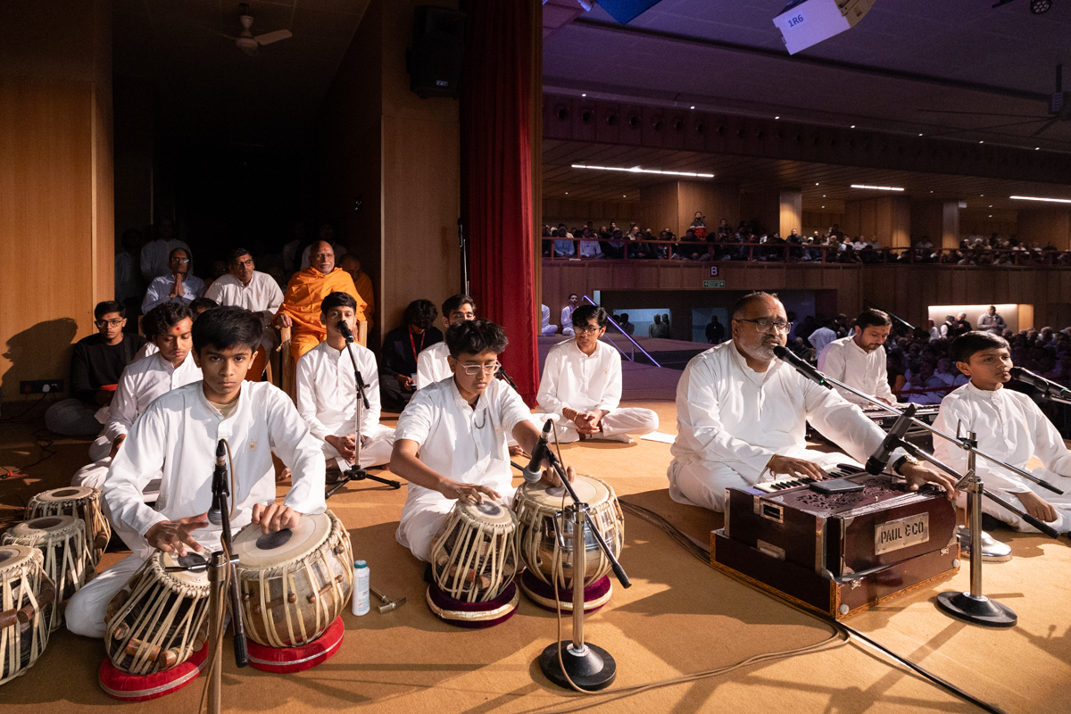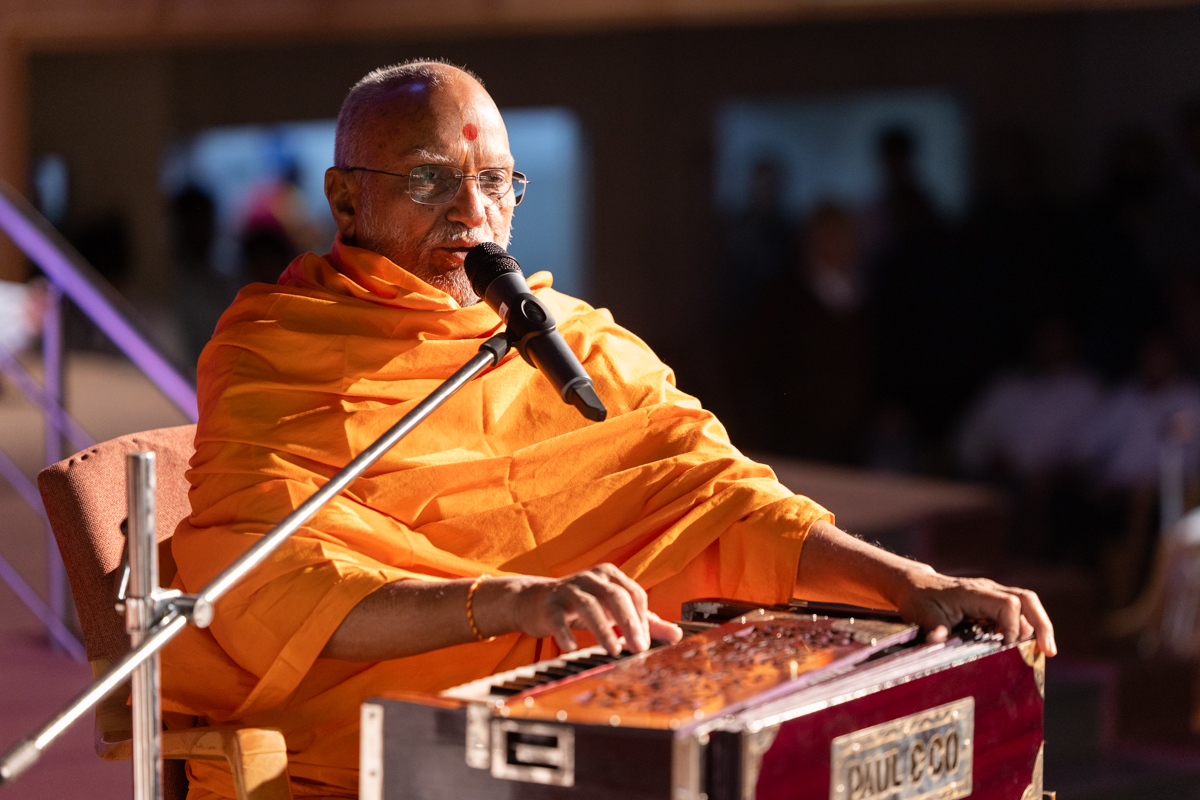 Yagneshwar Swami sings a kirtan in Swamishri's daily puja