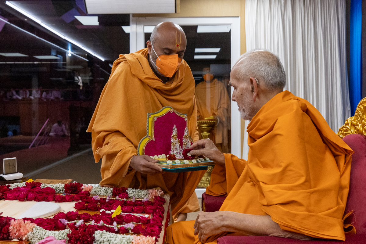 Thal is offered to Shri Harikrishna Maharaj and Shri Gunatitanand Swami Maharaj
